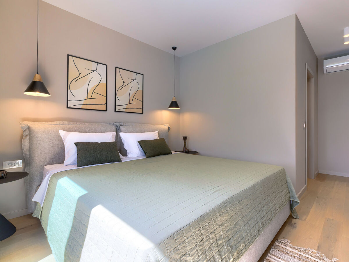 2 chambres, chaque chambre avec: 1 grand-lit (180 cm, longueur 200 cm), douche/WC et TV (satellite) (écran plat), air-conditionné.