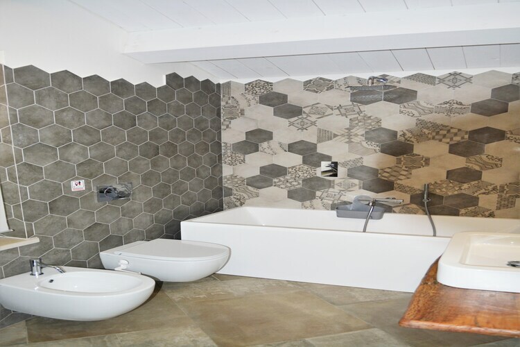 Rez-de-chaussée: (Salle de séjour(TV, table, coin salon, climatisation), cuisine ouverte(foyer(5 foyers), hotte, machine à café expresso, four, lave-vaisselle , combinaison réfrigérateur/congélateur, lave-linge , chaise haute), chambre(lit double grande taille(160 x 190 cm), TV, lit parapluie), salle de bains(baignoire, lavabo, WC, bidet)) table, solarium, barbecue