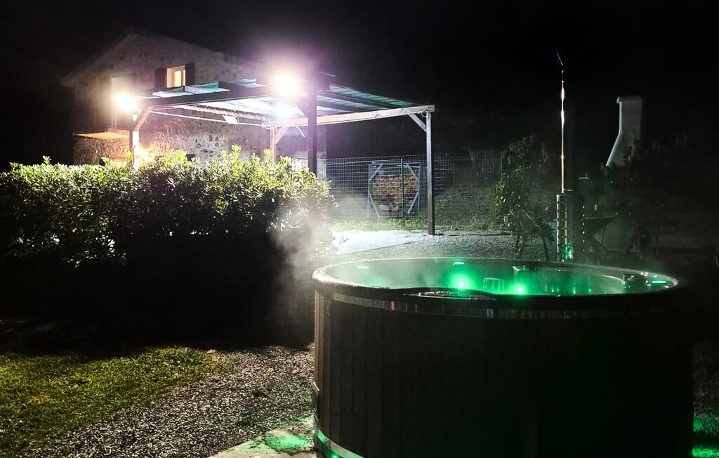 Bien-être à l'extérieur : Location de vacances disposant de chaises-longues et d'un ou plusieurs équipements tels que piscine extérieure, jacuzzi extérieur, lit à baldaquin de jardin etc...