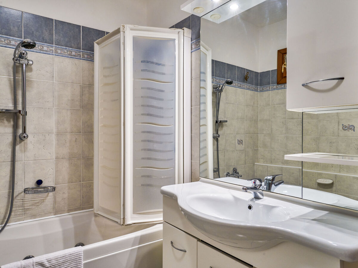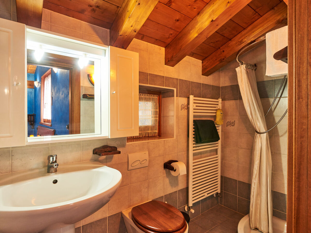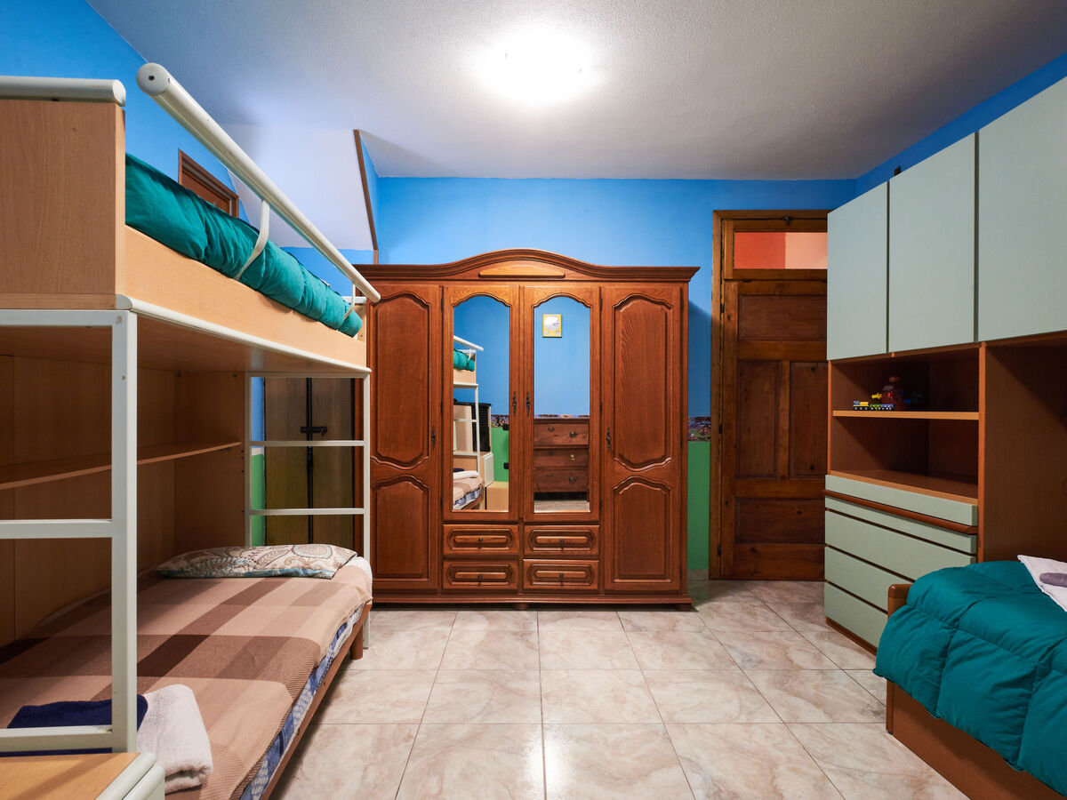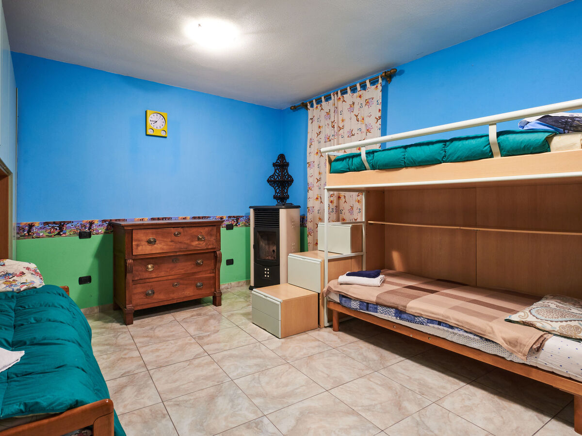 À l'étage inférieur: 1 chambre avec 1 lit et 1 x 2 lits superposés, radiateur.