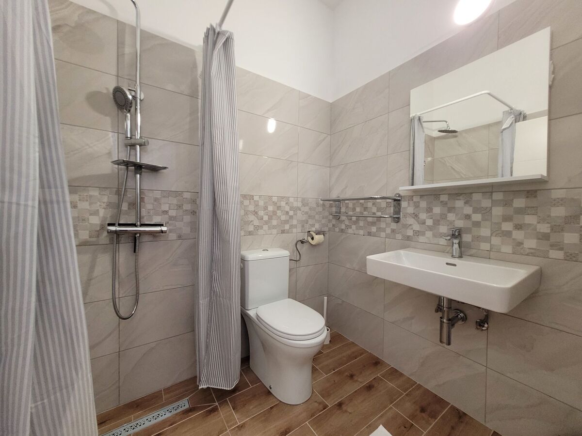 2 chambres, chaque chambre avec: 1 grand-lit (160 cm, longueur 200 cm), douche/WC et air-conditionné.