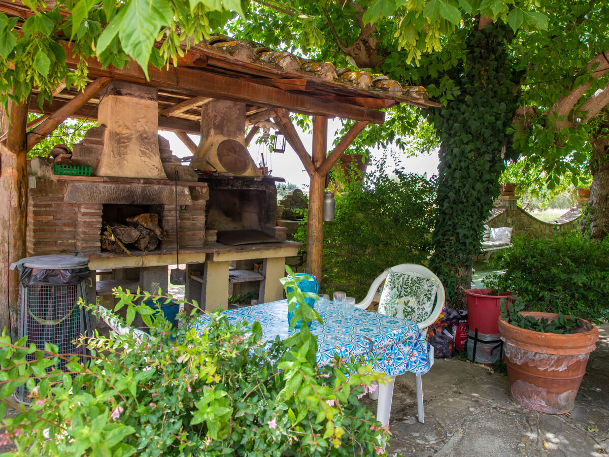 Douche extérieure, ping-pong, meubles de jardin, barbecue, four / barbecue en dur.