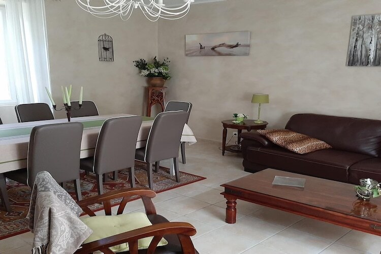 Au rez-de-chaussée, vous trouverez un grand séjour/salle à manger avec canapé et télévision, créant un espace convivial pour partager des repas et des soirées, ainsi qu'une cuisine entièrement équipée. Une connexion Wi-Fi haut débit est disponible dans tout le gîte, et des toilettes séparées sont également présentes à ce niveau. À l'étage, quatre chambres sont disponibles : trois avec lits doubles et une avec deux lits simples. Deux salles de douche modernes, chacune avec ses propres toilettes, desservent l'espace nuit. Il est possible d'ajouter deux lits bébé pour les familles voyageant avec de jeunes enfants.