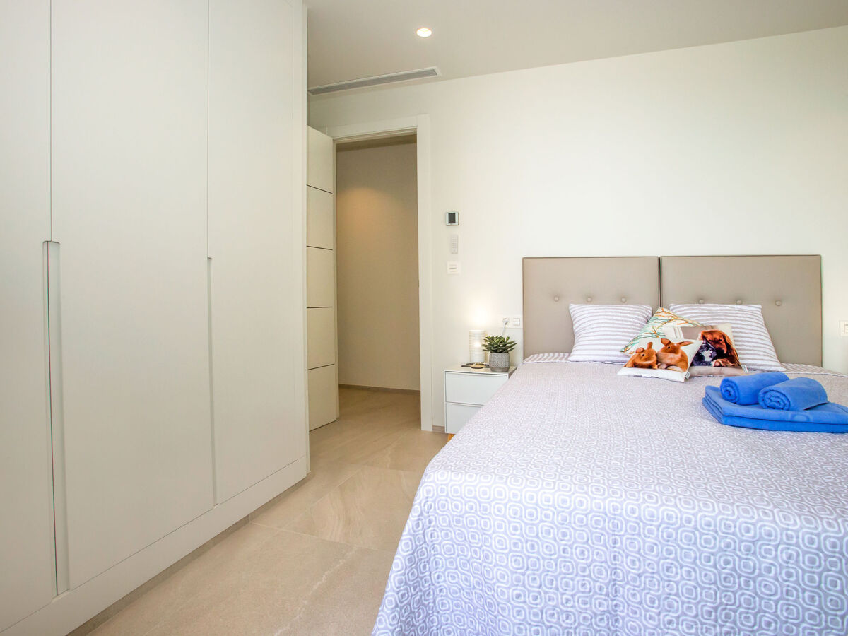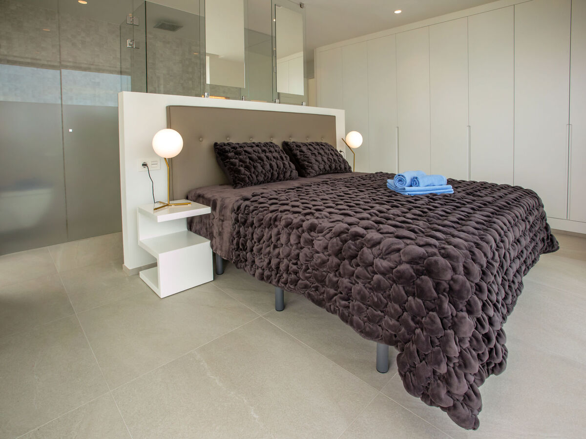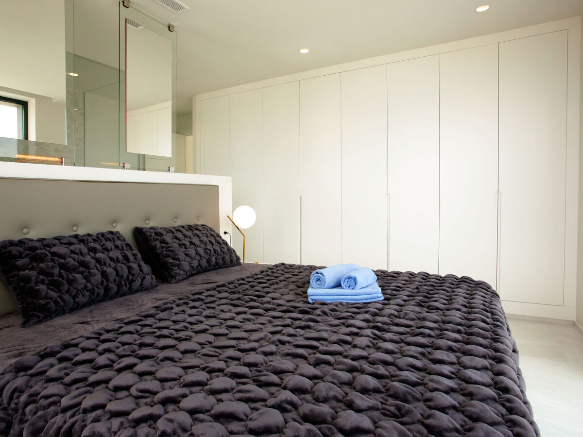 1 chambre avec 1 grand-lit (160 cm, longueur 200 cm), douche/WC, double vasque, air-conditionné et chauffage à air chaud.