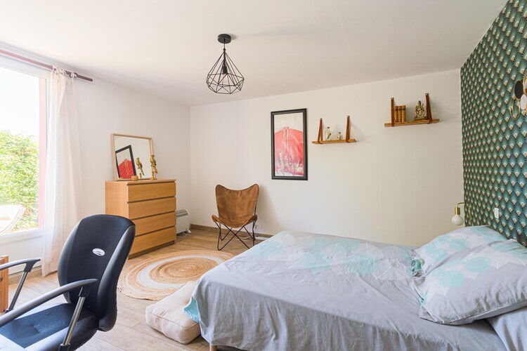 Rez-de-chaussée: (coin cuisine(bouilloire, plaque de cuisson, machine à café expresso, four, micro ondes, lave-vaisselle , réfrigérateur, congélateur), salle à manger-salon(canapé-lit double, TV, table, coin salon, chaise haute), chambre(lit double), chambre(lit double), salle de bains(douche, lavabo, WC, bidet)) table, lit bébé, balcon ou terrasse, jardin, jardin, mobilier de jardin, transats, barbecue, parking, parking, piscine(extérieur, 3 x 3 m., ouvert de Juin jusqu'à (inclus) Sept), équipements de jeux, chaise haute, sèche-cheveux, salon de jardin, jeux de société