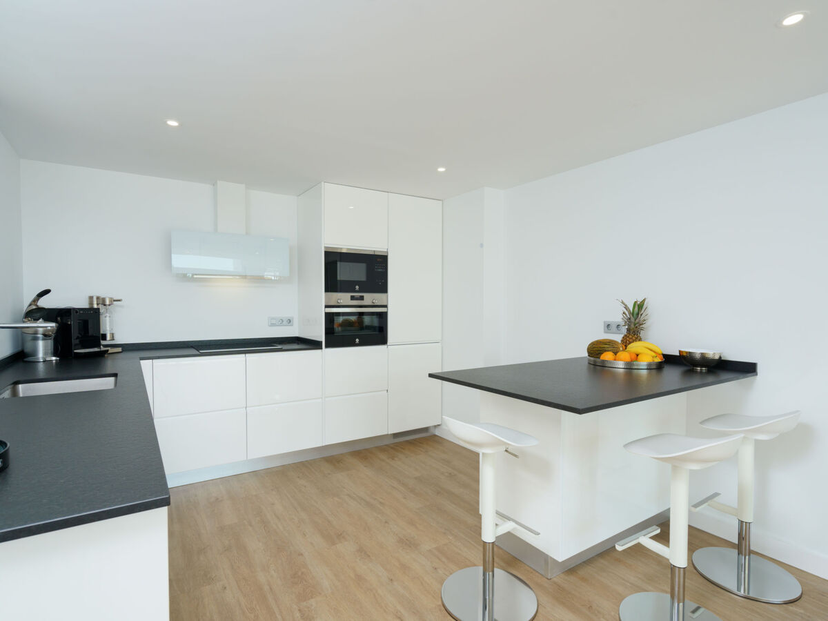 Cuisine ouverte (four, lave-vaisselle, 3 plaques à induction, grille-pain, bouilloire électrique, micro-ondes, cafetière électrique) avec air-conditionné et chauffage à air chaud.
