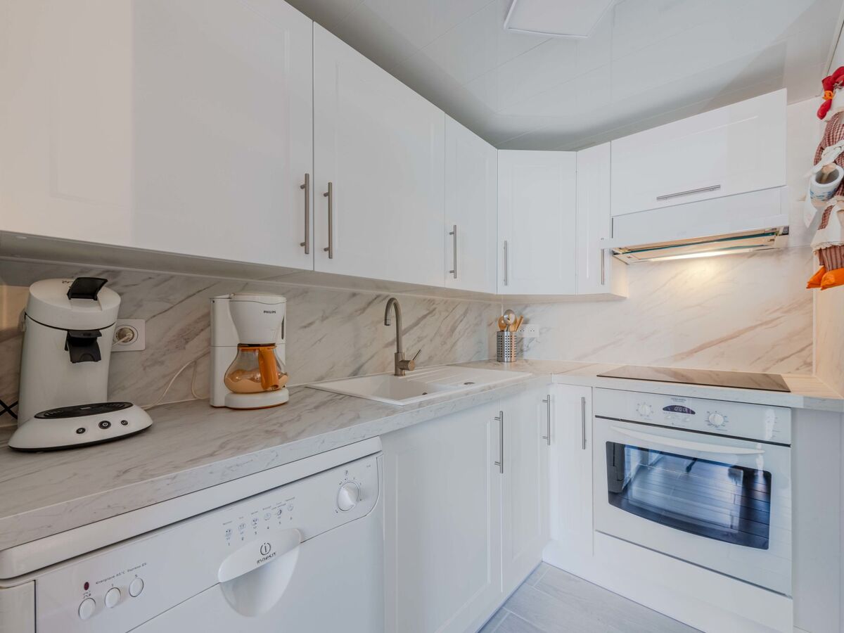 Cuisine ouverte (mini-four, lave-vaisselle, 3 plaques vitrocéramiques, grille-pain, bouilloire électrique, micro-ondes, cafetière électrique).