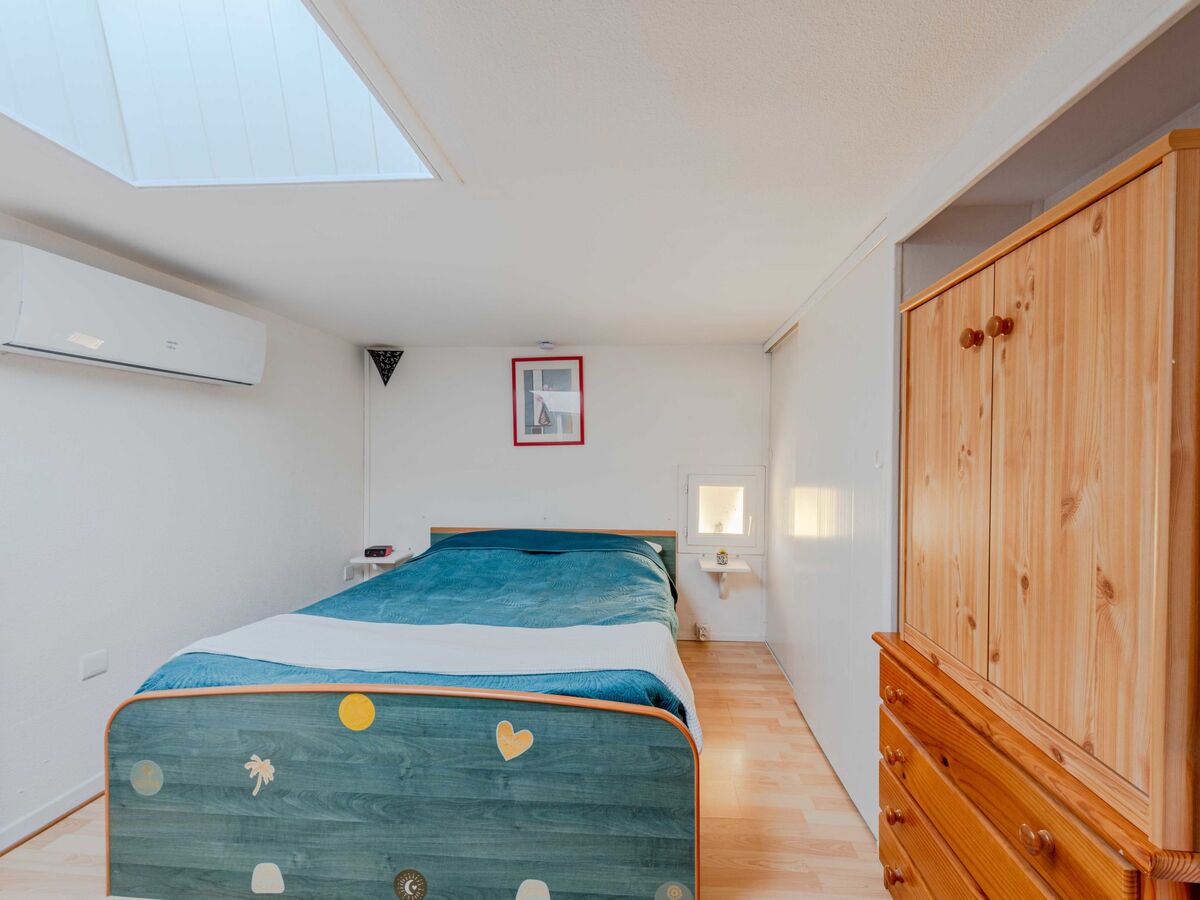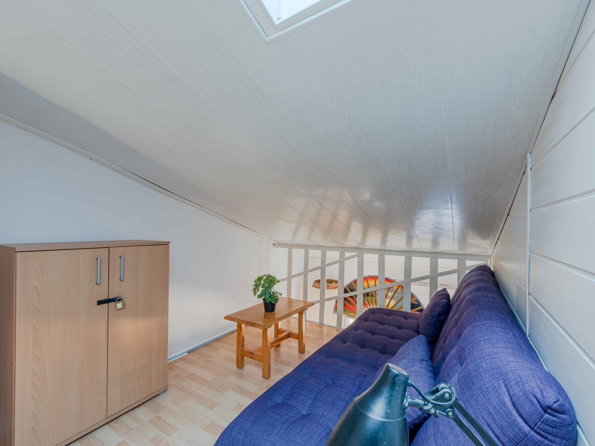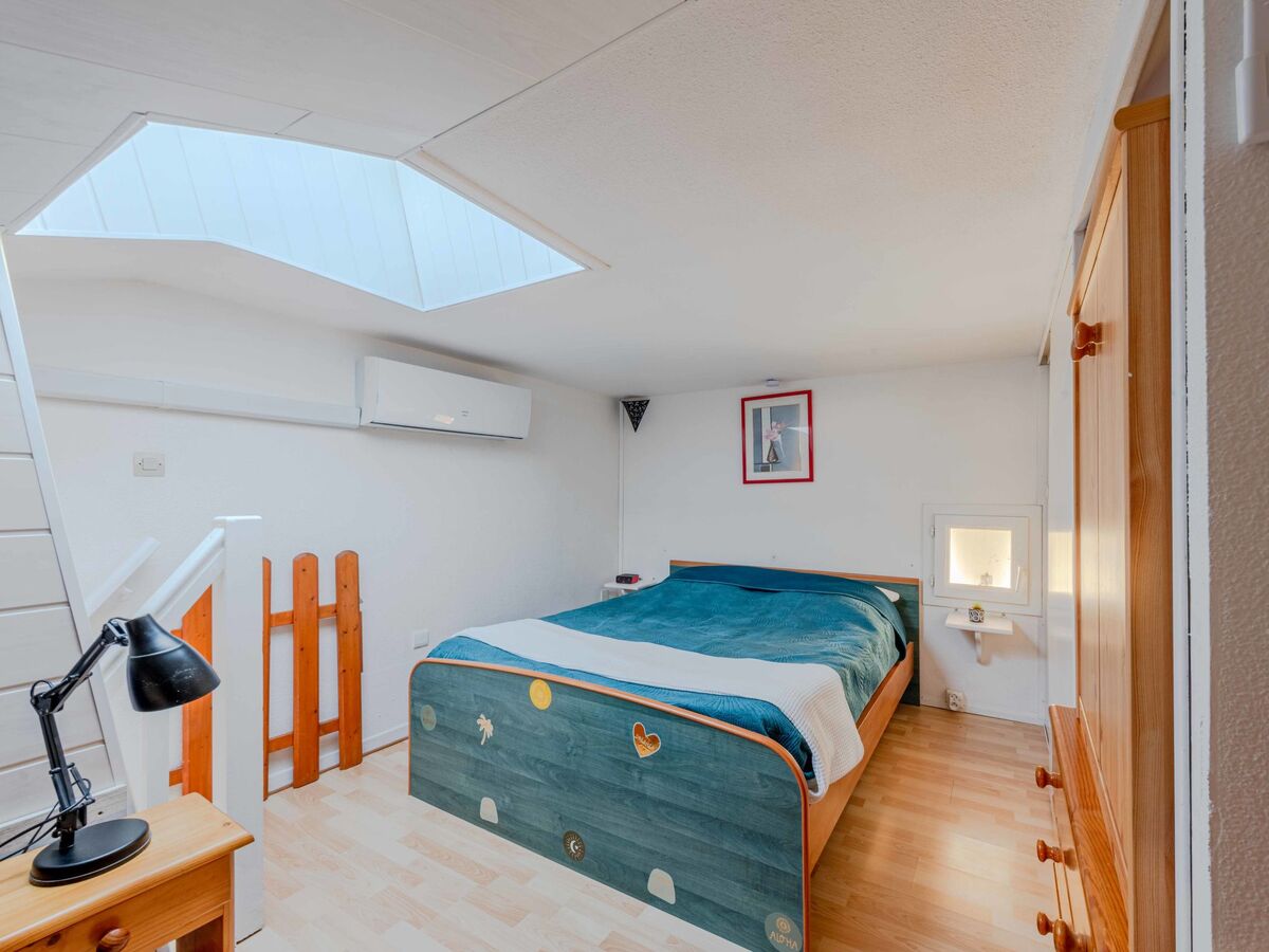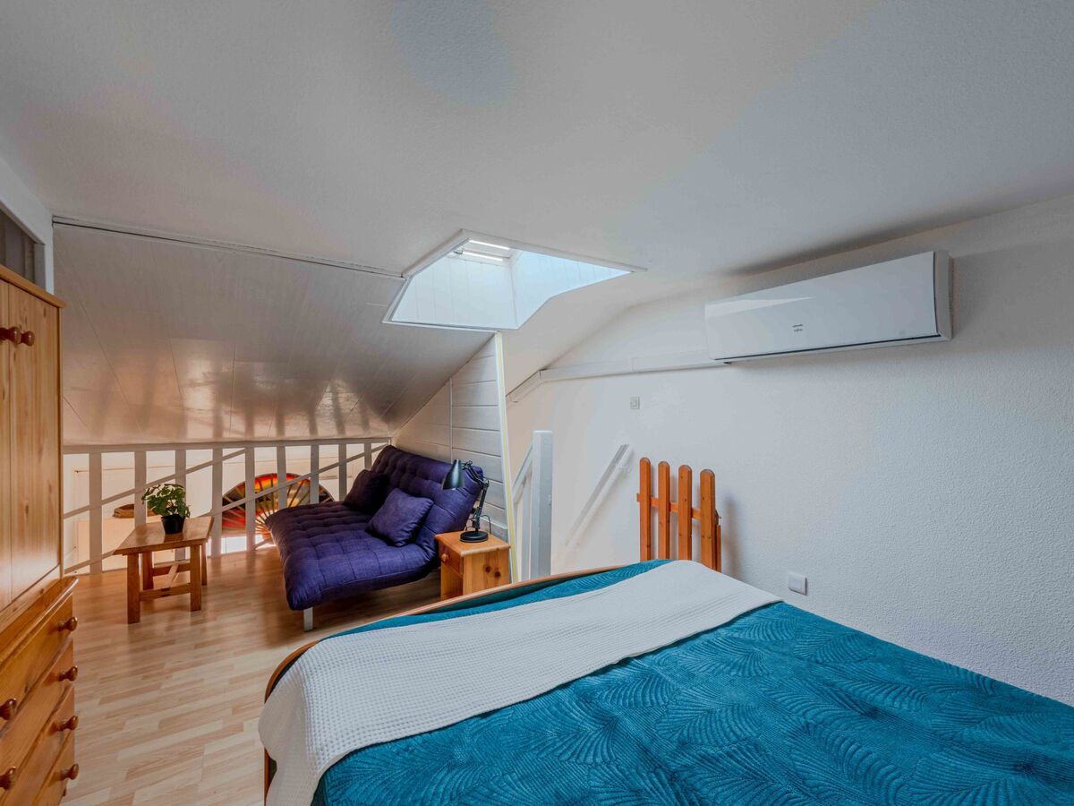 À l'étage supérieur: galerie ouverte avec 1 grand-lit (1 x 140 cm, longueur 190 cm), air-conditionné.