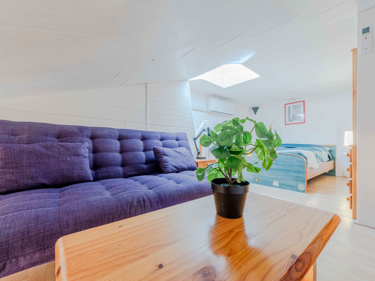 Séjour/salle à manger avec 1 divan-lit double (1 x 140 cm, longueur 190 cm), TV (écran plat), air-conditionné.