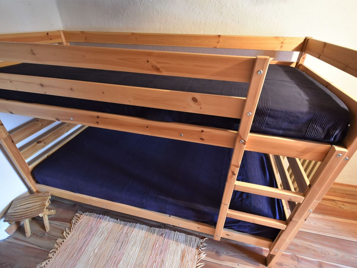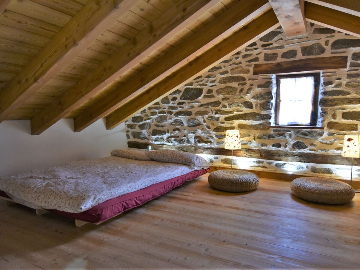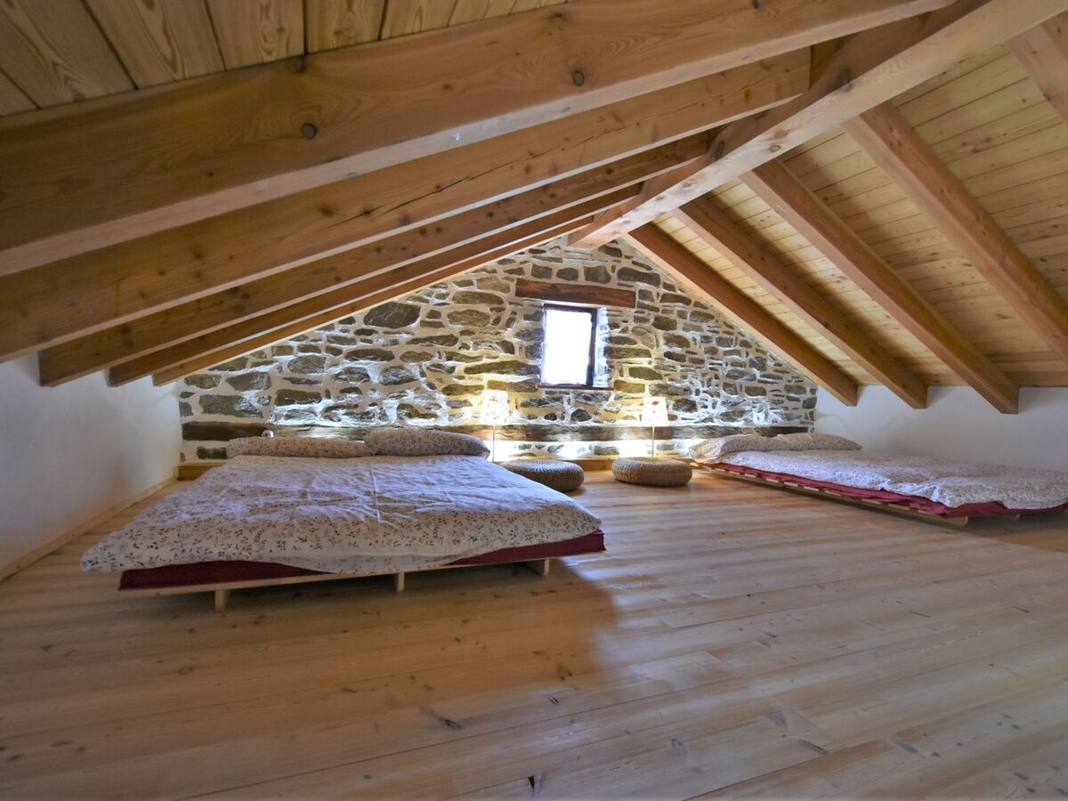À l'étage supérieur: 1 chambre, hauteur plafond 185 - 200 cm avec 1 grand-lit (140 cm).