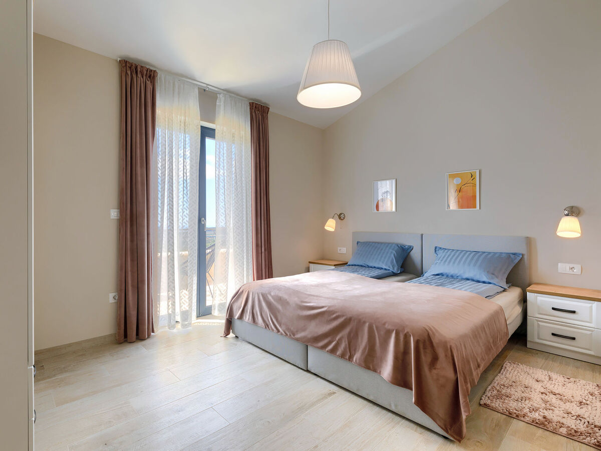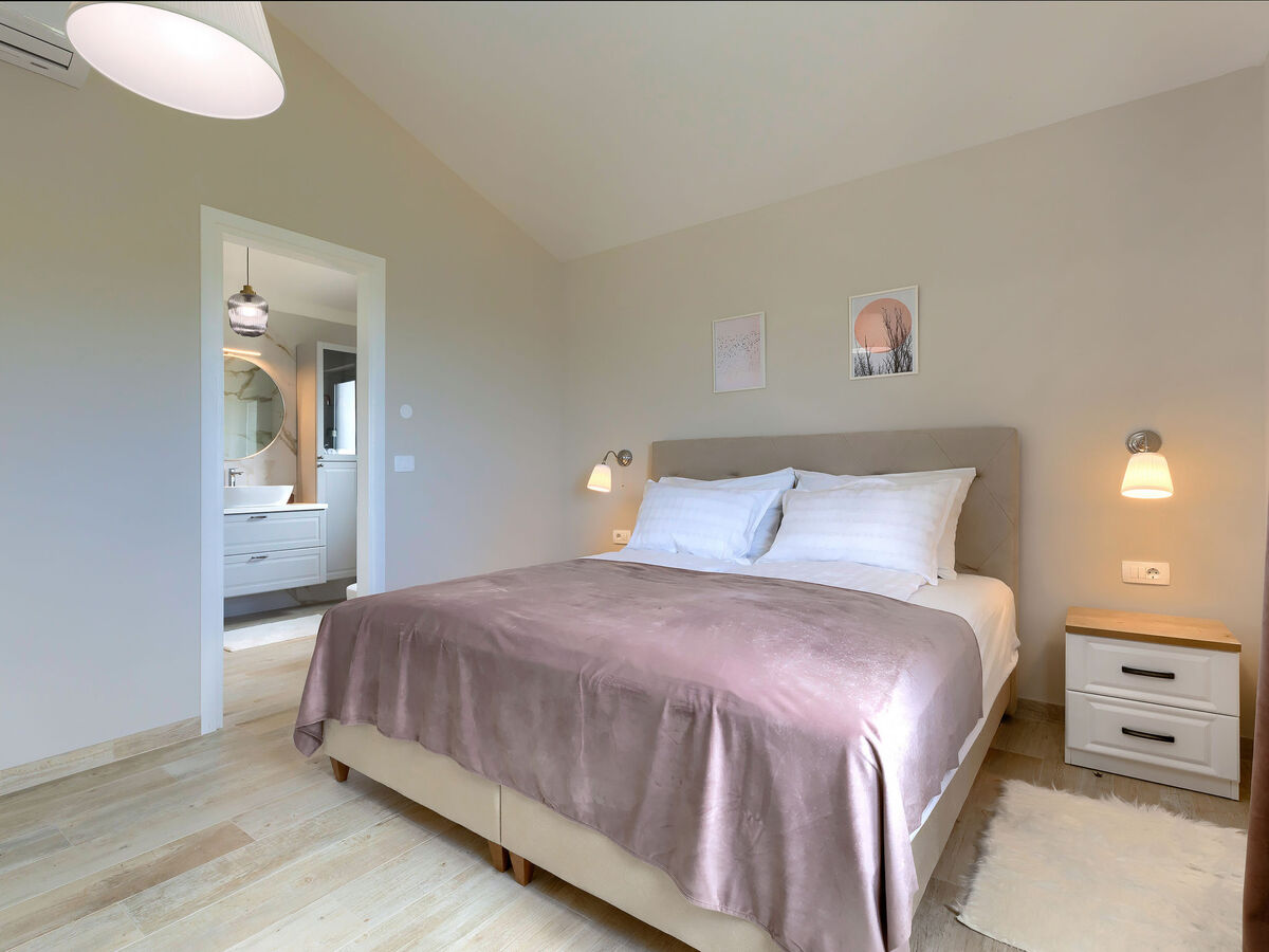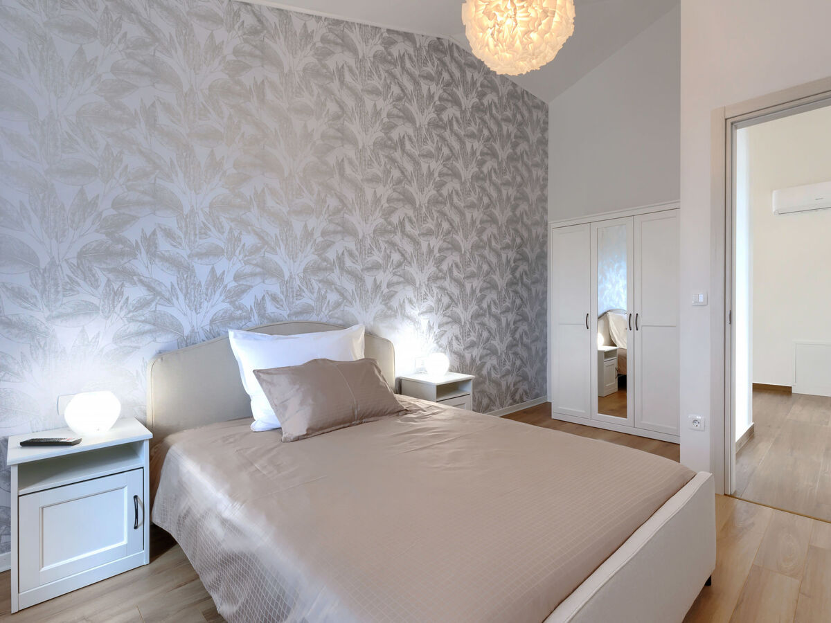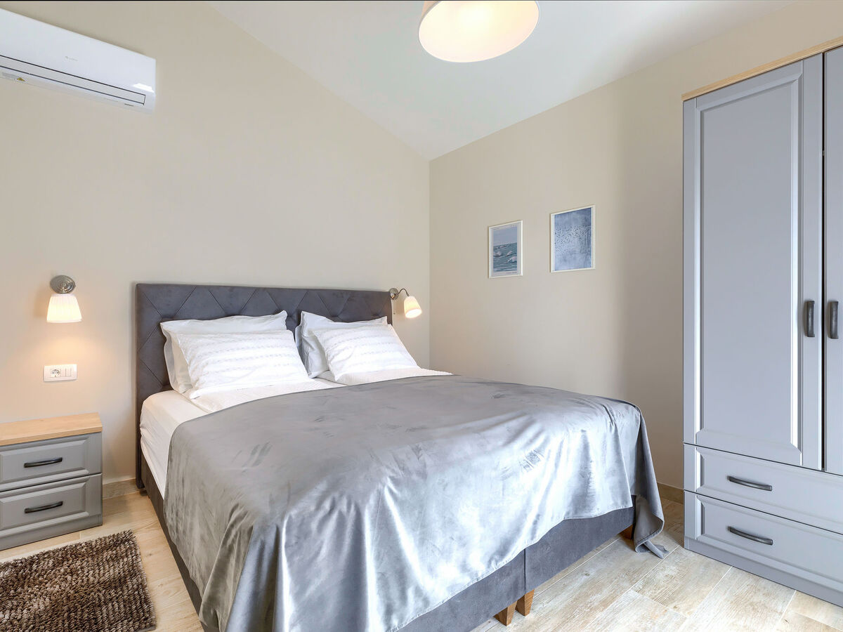 1 chambre avec 1 grand-lit (180 cm, longueur 200 cm), TV (satellite) (écran plat), air-conditionné.
