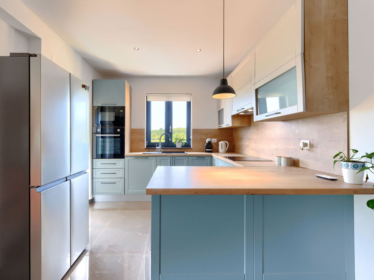 Cuisine ouverte (4 plaques de cuisson, four, lave-vaisselle, bouilloire électrique, congélateur, cafetière électrique).