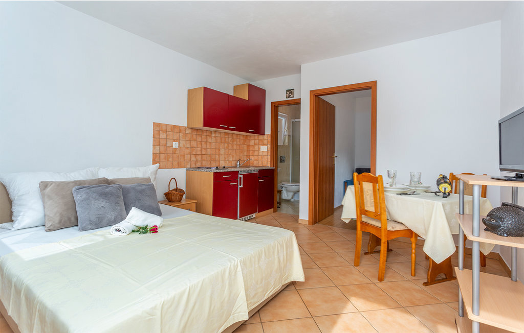 L'aimable hôte, qui a son propre appartement dans la maison principale, peut, si vous le souhaitez, vous guider vers les plages voisines. Vous y profiterez des eaux magnifiques de la mer Adriatique et pourrez vous détendre sur la plage de galets.