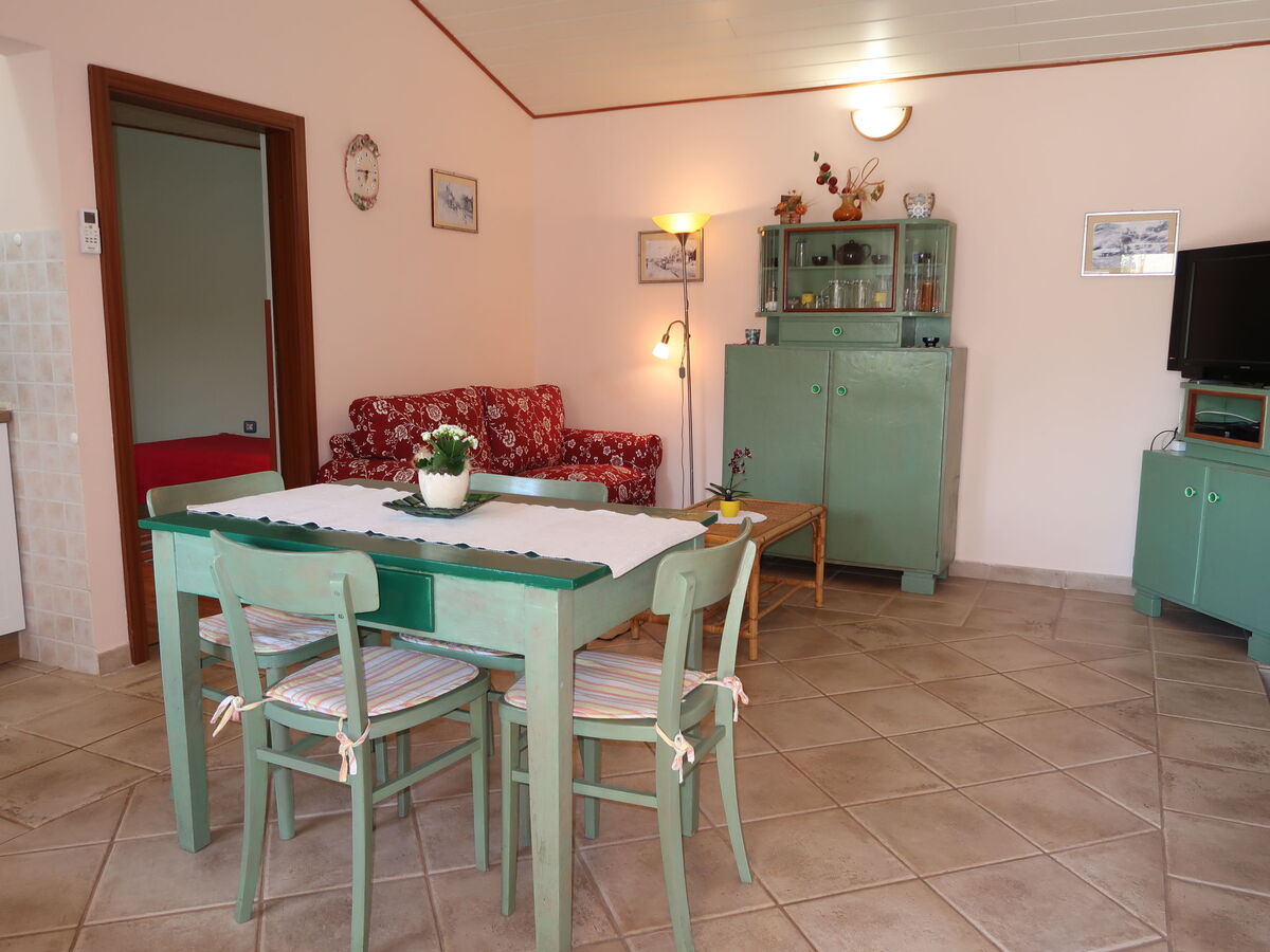 Séjour/salle à manger avec TV (satellite) et air-conditionné.
