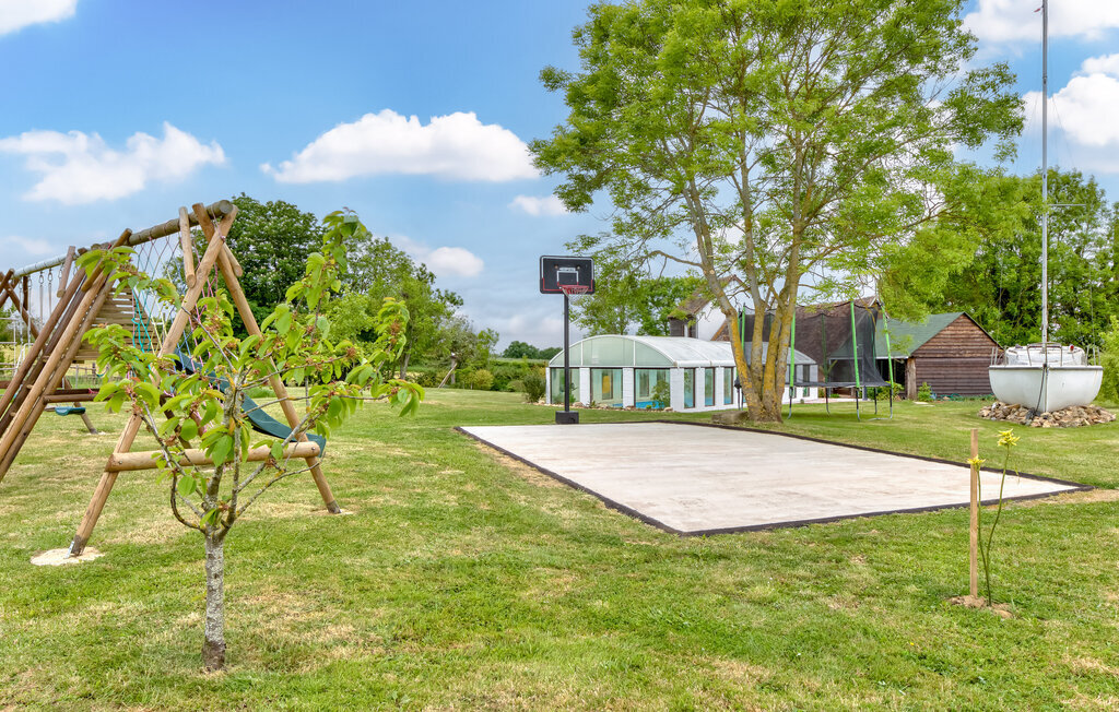 Activités de plein air : Cette location de vacances propose au moins 3 activités de plein air pour toute la famille comme par exemple une table de ping-pong, un trampoline, des boules de pétanques, un panier de basket avec son ballon etc...