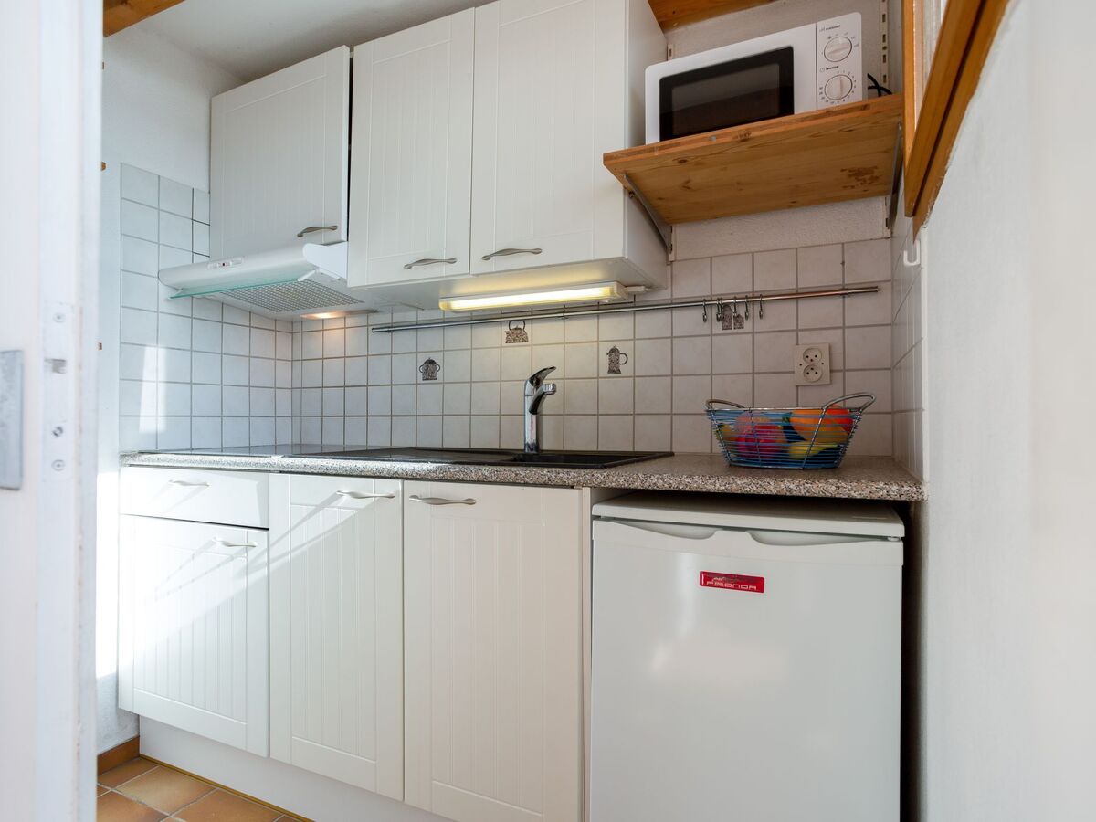 À l'étage supérieur: galerie avec 1 grand-lit (1 x 140 cm, longueur 190 cm), chauffage électrique.