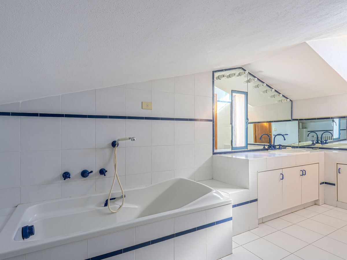 Grand mansardé 1 chambre, sur 2 niveaux avec 1 lit (80 cm), 1 lit double et cheminée (uniquement à titre de décoration), bain/bidet/WC.