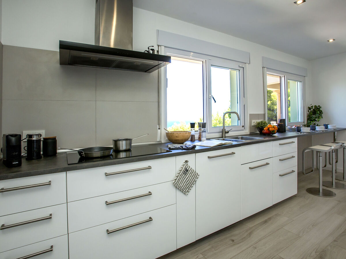 Grande cuisine (four, lave-vaisselle, 4 plaques à induction, grille-pain, bouilloire électrique, micro-ondes, congélateur, cafetière électrique, Capsules pour machine à café (Nespresso)).