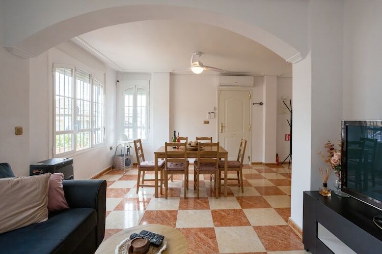 Située dans un quartier paisible de la côte d'Orihuela, cette charmante maison de vacances espagnole à Cabo Roig est idéale pour les familles recherchant convivialité et intimité. Pouvant accueillir 6 personnes et 1 bébé, la villa dispose de plusieurs terrasses ensoleillées, dont une avec vue sur la mer au loin, et d'une piscine extérieure commune à seulement 50 mètres.
