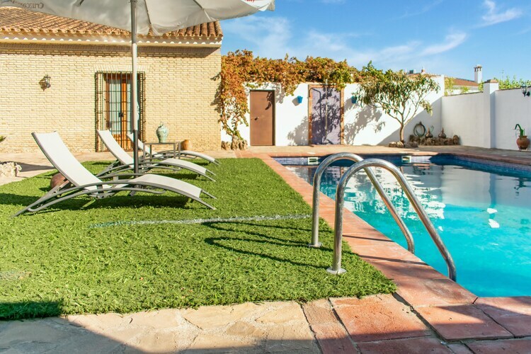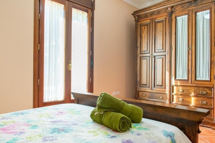Rez-de-chaussée: (Salle de séjour(TV, cheminée, coin salon), salle à manger(table), cuisine(table, foyer, grille-pain, hotte, cafetière/percolateur, four, micro ondes, combinaison réfrigérateur/congélateur, Mixeur à main), chambre(lit simple, lit simple), chambre(lit simple, lit simple), chambre(lit simple, lit simple), chambre avec salle de bains(Lit double petite taille, douche, lavabo, WC, bidet), salle de bains(baignoire, lavabo, WC, bidet)) sanitaires(WC, lave-linge ), salle de relaxation, véranda, baignoire où douche, patio, climatisation, jardin, mobilier de jardin, transats, barbecue, parking, chaises longues, parasol, piscine(privé), lit d'enfant, table à repasser
