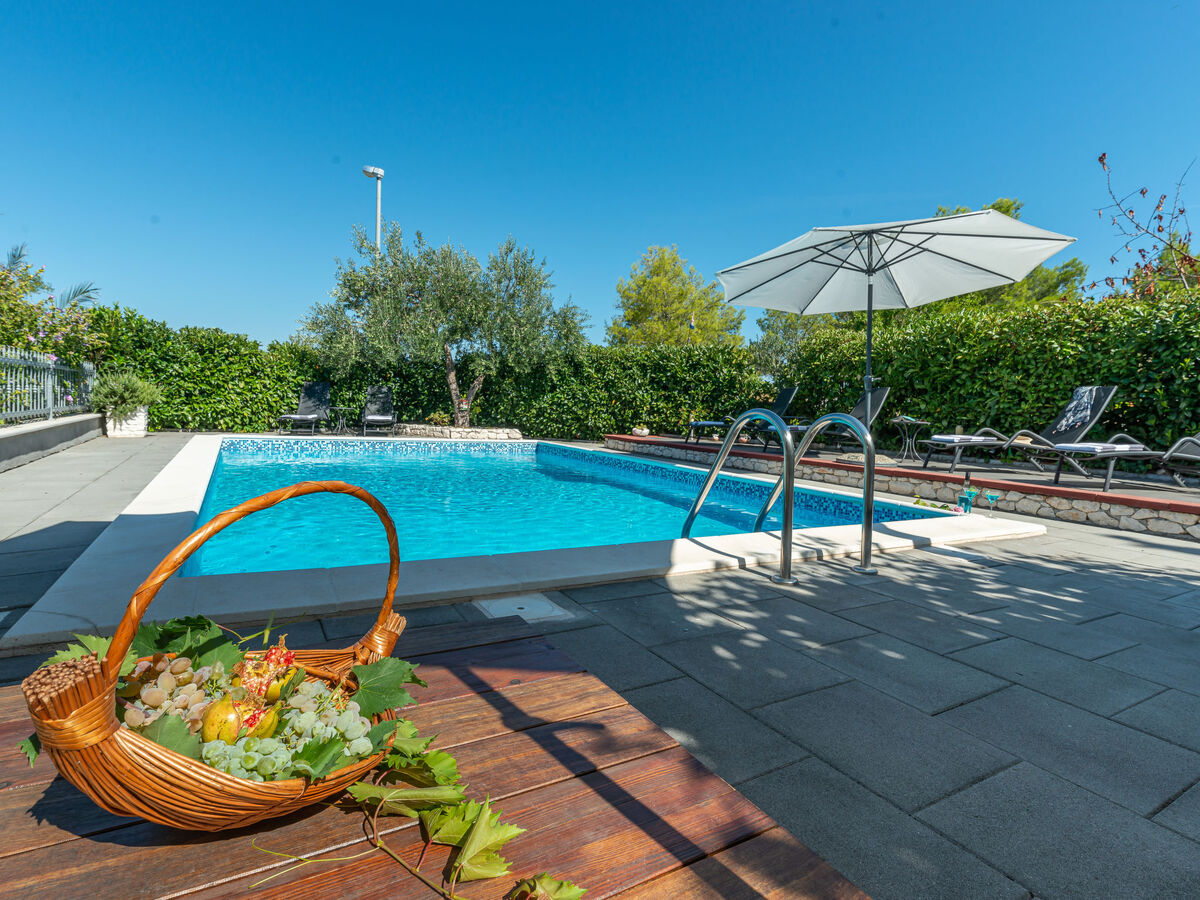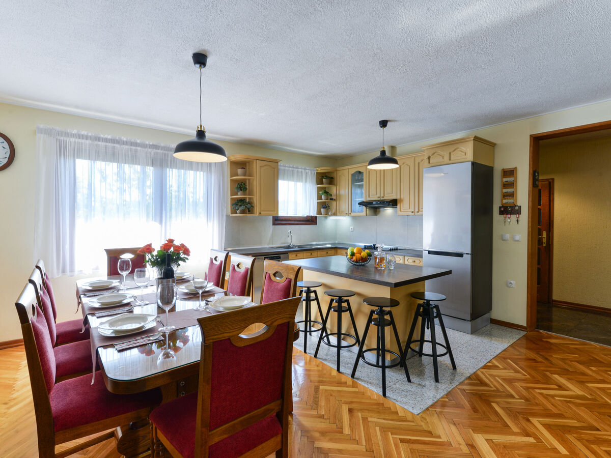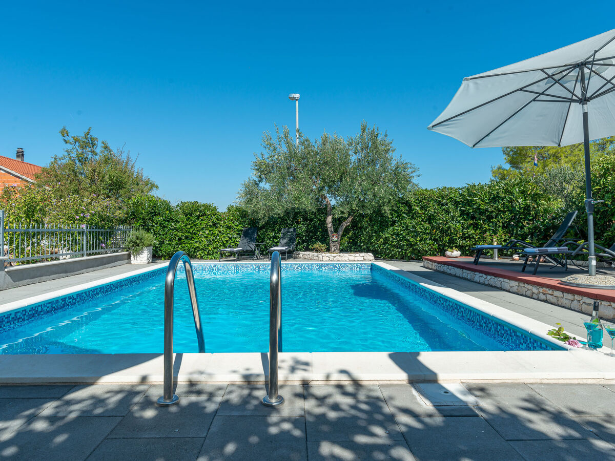 A usage privé: terrain 600 m2 (clôturé), jardin avec pelouse et arbres, piscine rectangulaire (7 x 4 m, 31 m2, profondeur 150 cm, disponibilité saisonnière: 15.Mai.