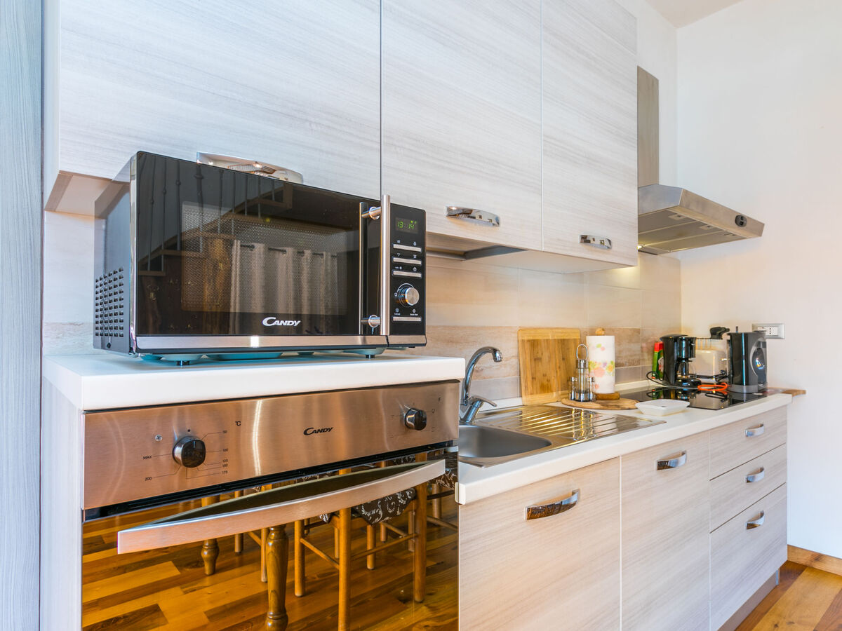 Cuisine (four, lave-vaisselle, 4 plaques à induction, grille-pain, bouilloire électrique, micro-ondes) avec table pour les repas, air-conditionné.