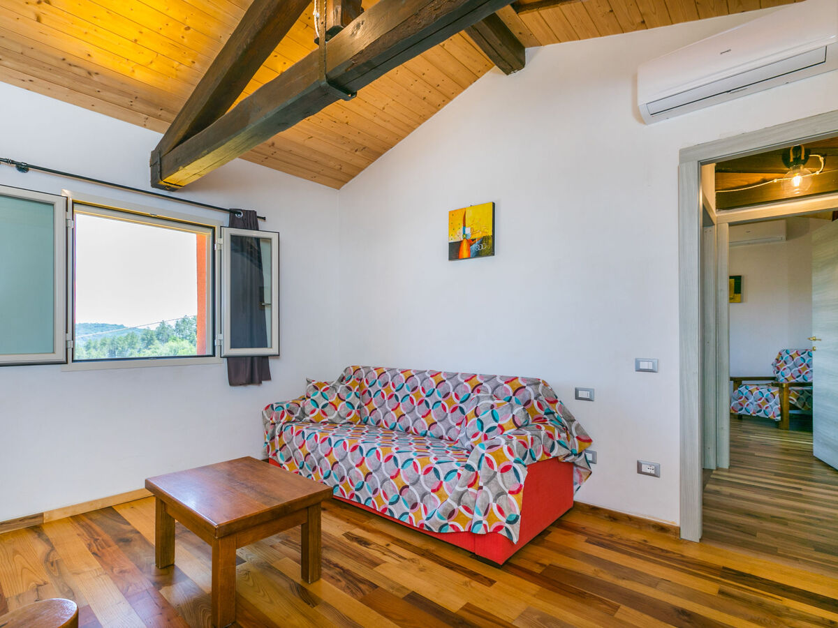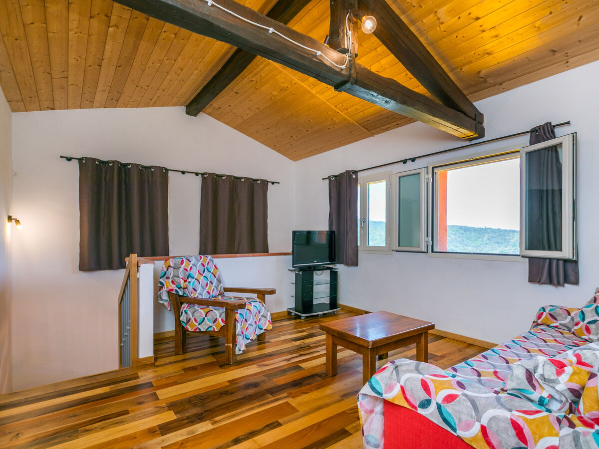 À l'étage supérieur: petit séjour avec TV et air-conditionné.