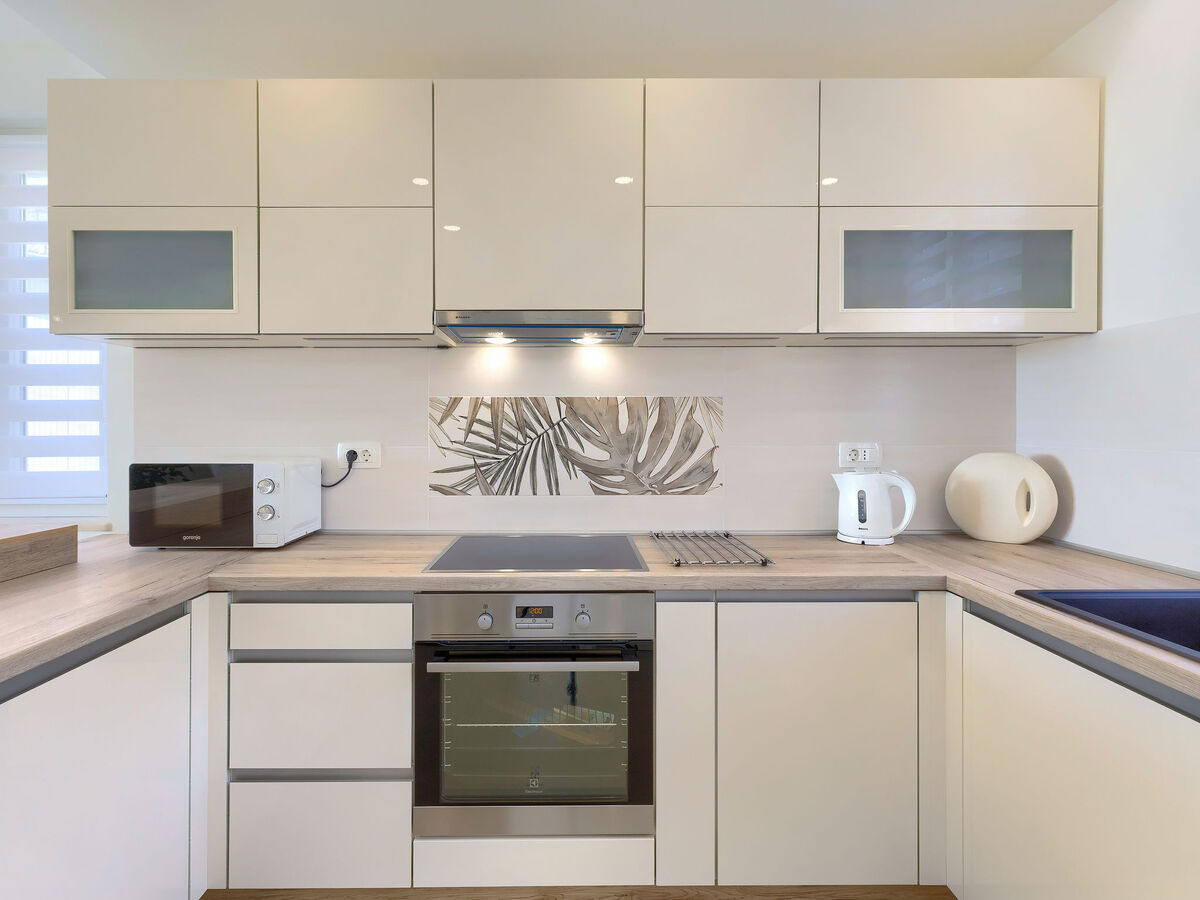 Cuisine ouverte (4 plaques de cuisson, lave-vaisselle, bouilloire électrique, congélateur, cafetière électrique).