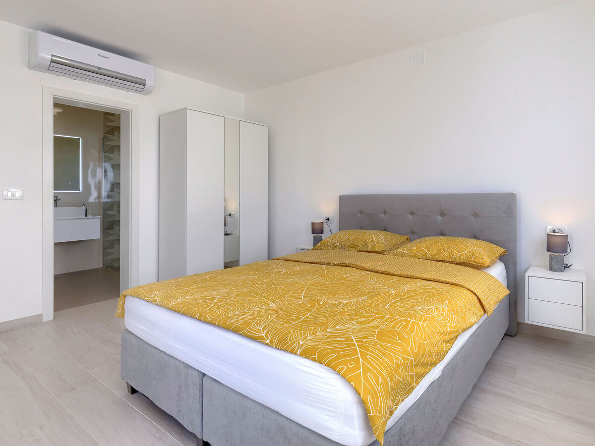 1 chambre avec 1 grand-lit (160 cm, longueur 200 cm), TV (satellite) (écran plat), air-conditionné.
