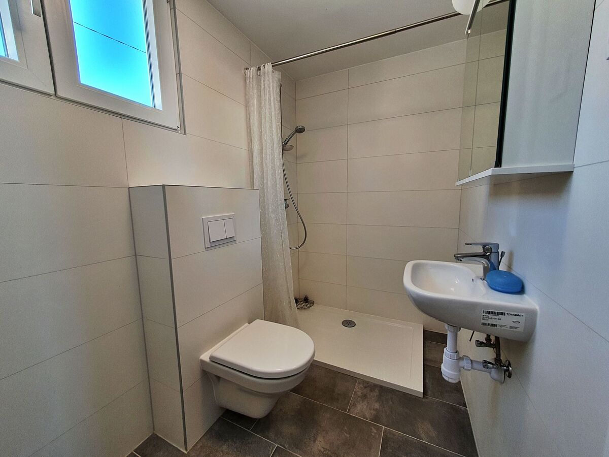 Aménagement moderne: 1 chambre avec 1 grand-lit (160 cm, longueur 200 cm), douche/WC.
