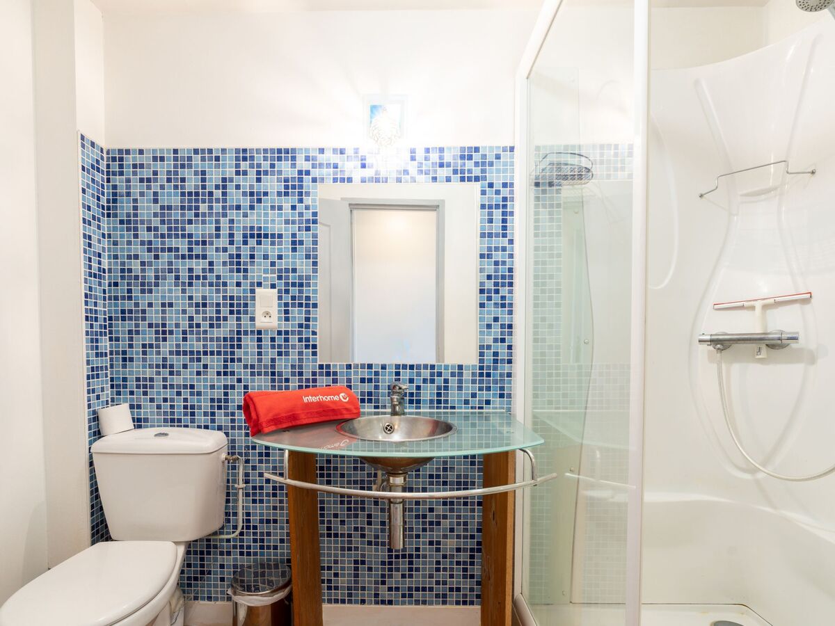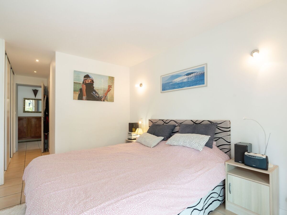 1 chambre avec 1 grand-lit (160 cm, longueur 200 cm), bain/WC.