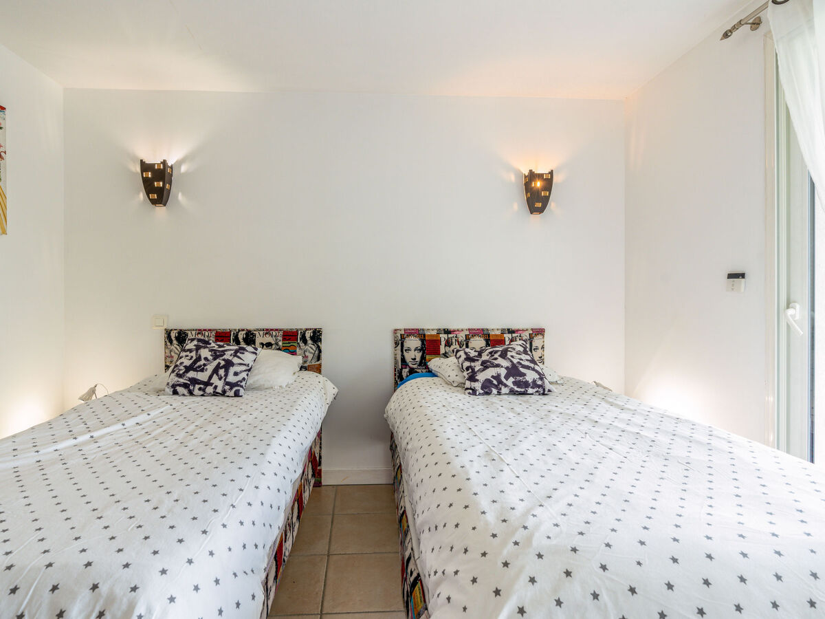 À l'étage inférieur: 2 chambres, chaque chambre avec: 2 lits (90 cm, longueur 190 cm), bain/WC et chauffage a gaz.