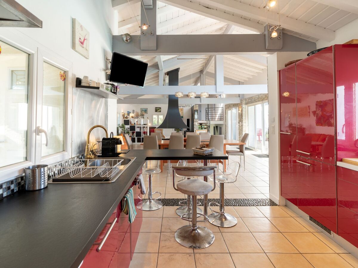 Cuisine (four, lave-vaisselle, 4 plaques vitrocéramiques, grille-pain, bouilloire électrique, cafetière électrique, Capsules pour machine à café (Nespresso) (NON INCLUSES)) avec TV (écran plat).