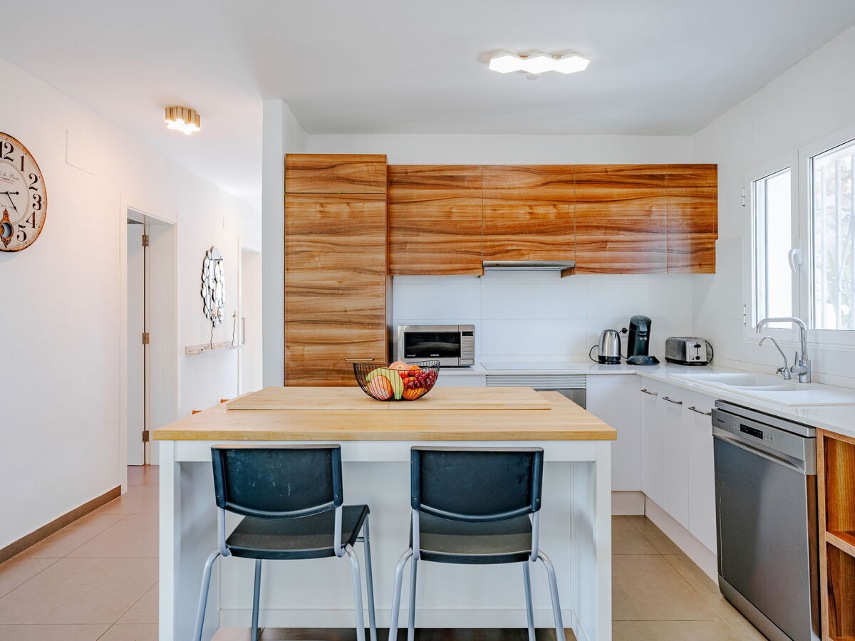 Cuisine ouverte (four, lave-vaisselle, 3 plaques à induction, grille-pain, micro-ondes, congélateur, cafetière électrique).