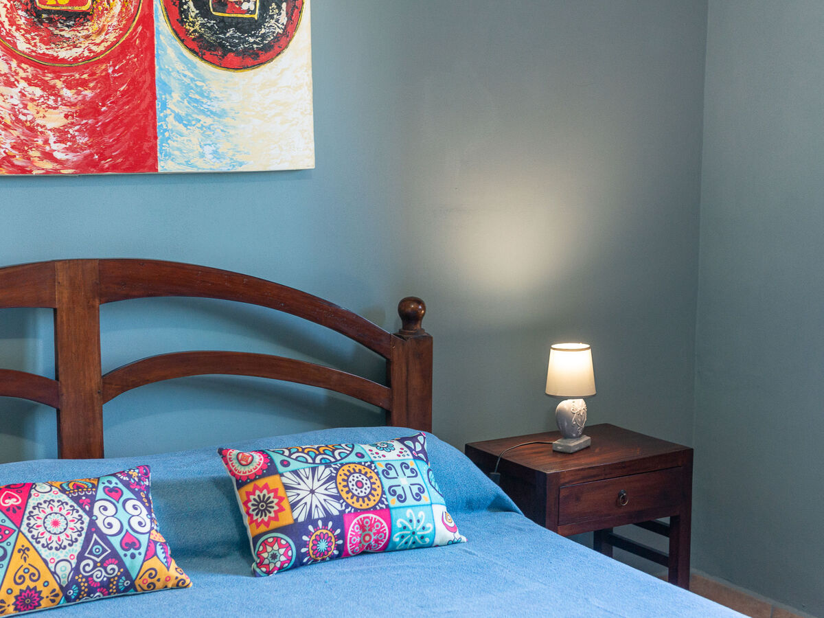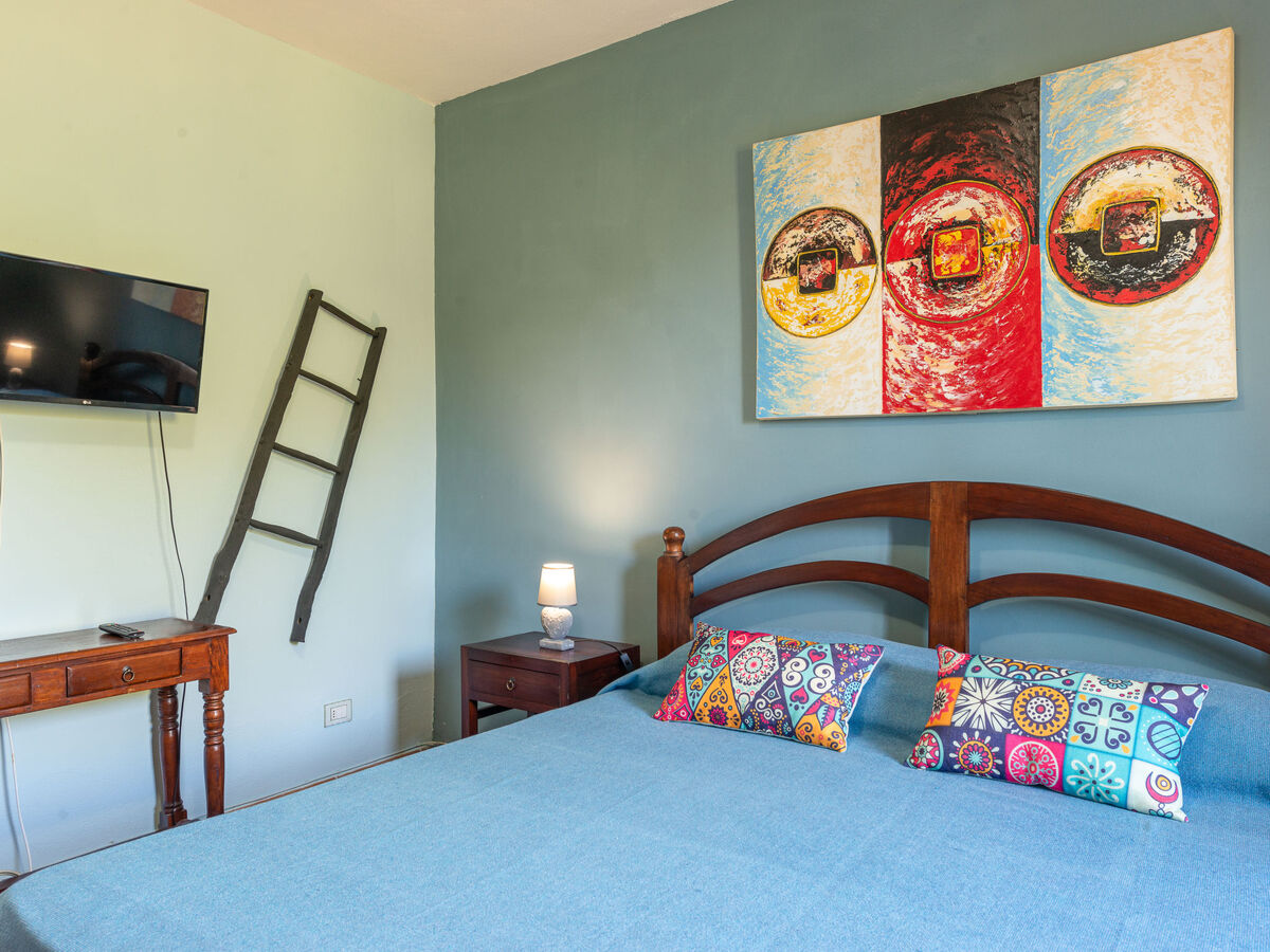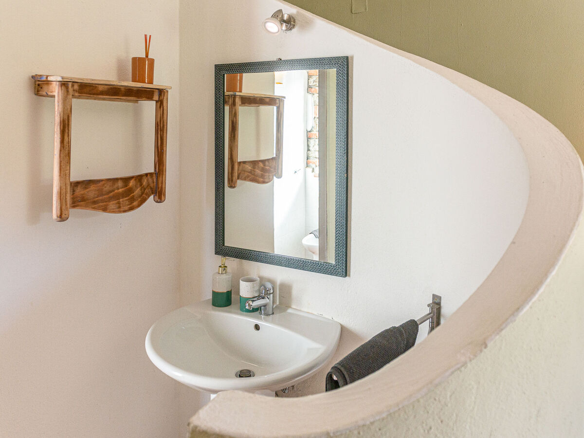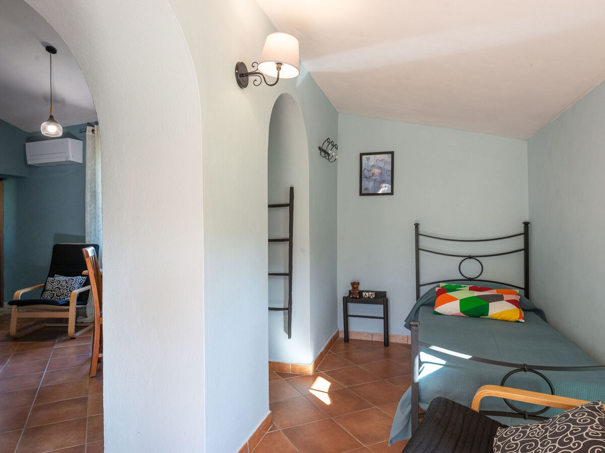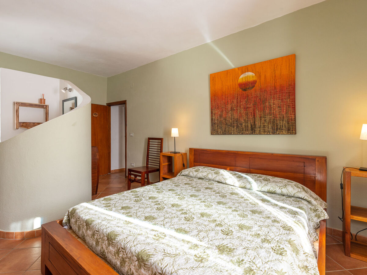 À l'étage supérieur: (escalier extérieur) 1 chambre avec 2 lits, 1 lit double et cheminée (uniquement à titre de décoration), douche/bidet/WC, TV, air-conditionné et chauffage à air chaud.
