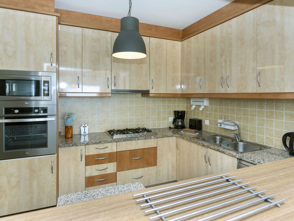 Cuisine ouverte (four, lave-vaisselle, 4 plaques vitrocéramiques, grille-pain, bouilloire électrique, micro-ondes, congélateur, cafetière électrique).