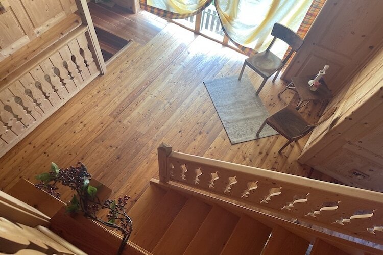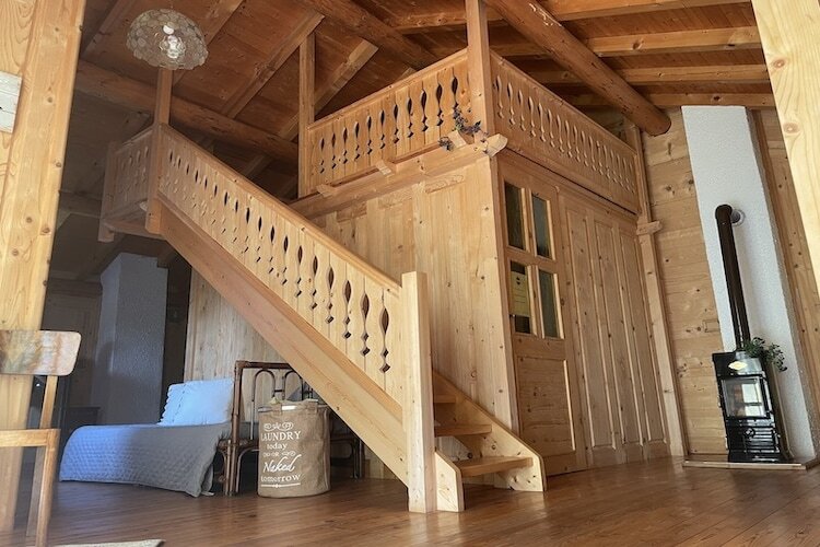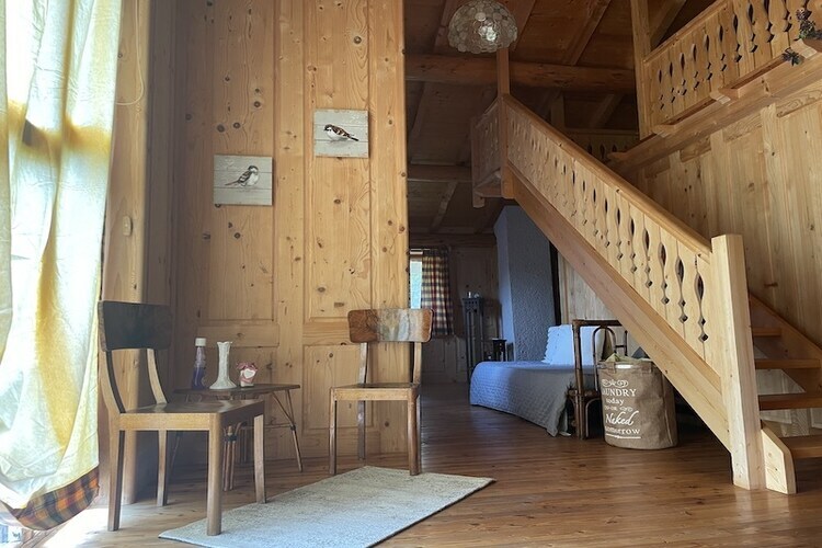 Rez-de-chaussée: (salle à manger(TV, table, poêle), cuisine/salle à manger(table, foyer, bouilloire, grille-pain, plaque de cuisson, cafetière/percolateur, micro ondes, réfrigérateur, Presse-agrumes), salle de bains(douche, lavabo, WC), réserve) Au 1er étage: (chambre(Accessible par la pièce de passage, par un escalier raide)(lit double, terrasse), chambre en enfilade(lit simple, Lit pliant simple), chambre en mezzanine(par un escalier raide)(lit double), remise) balcon ou terrasse, mobilier de jardin, transats, parking, fer à repasser, jeux de société, jouet