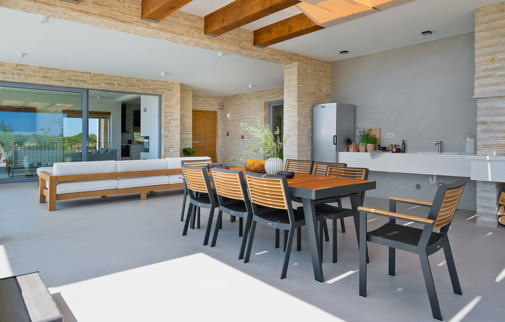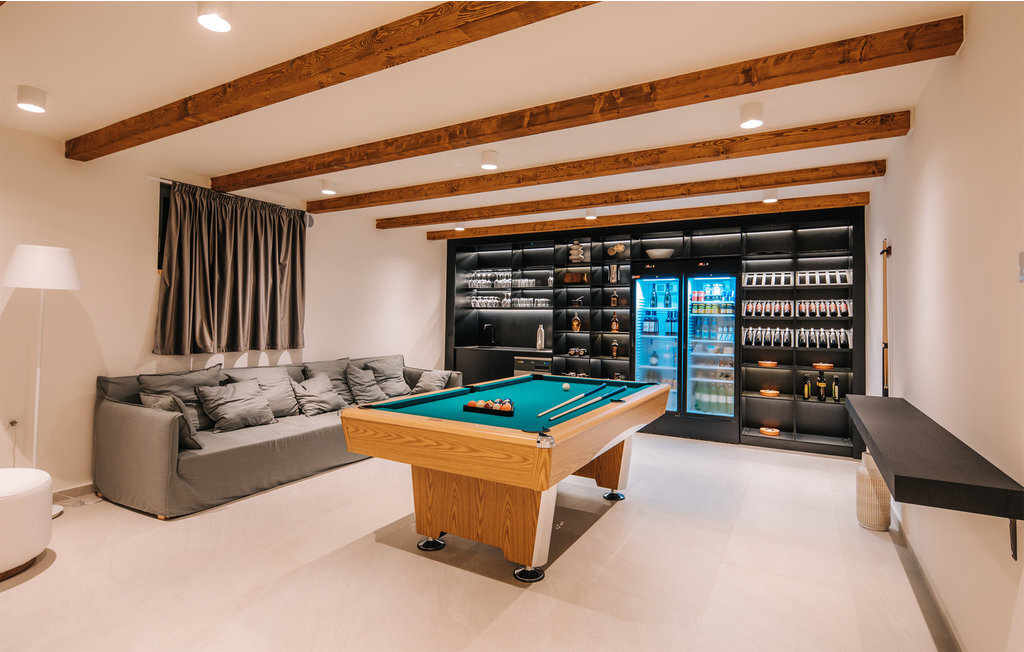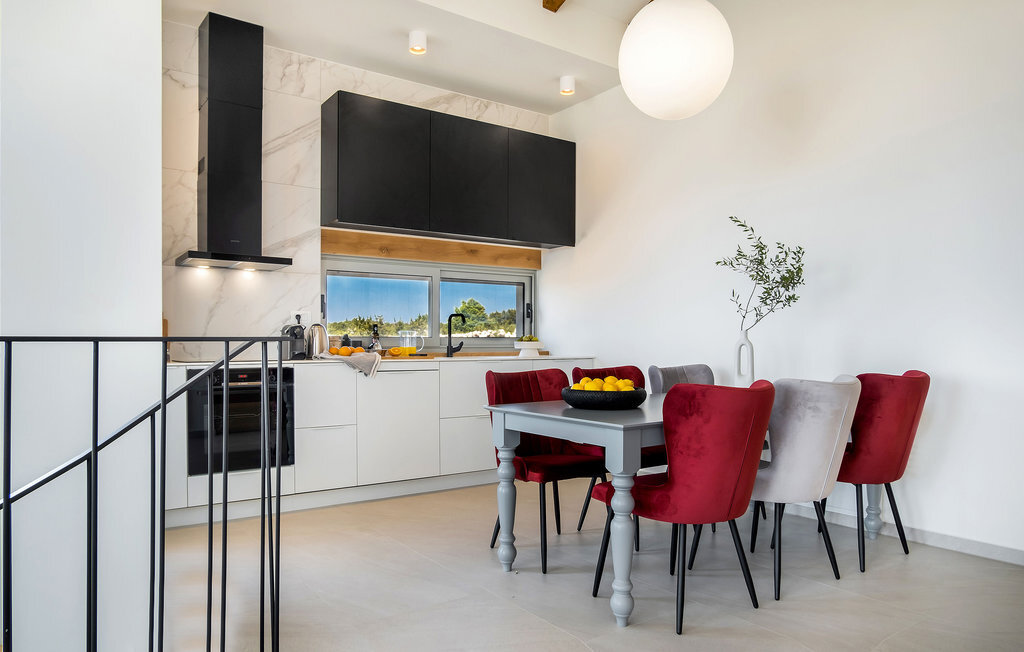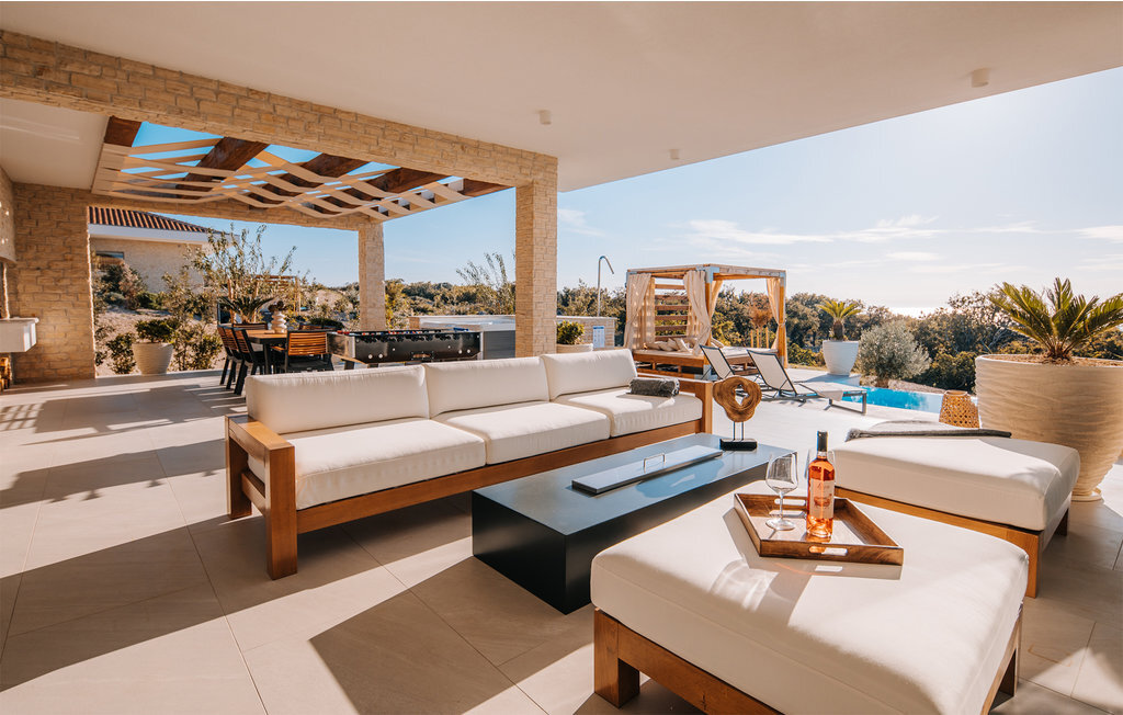 Sur l'île de Pag, cette superbe maison vous accueille dans un cadre de rêve. À l'intérieur, vous trouverez des chambres de grande qualité qui donnent une impression de style. Partout, la maison séduit par ses solutions réfléchies et ses matériaux de grande qualité. Préparez vos plats dans l'agréable cuisine tout en admirant les environs ou détendez-vous sur le canapé en lisant vos livres de vacances, d'où vous avez une belle vue sur les environs et où quelques pas seulement vous séparent d'un plongeon dans la piscine extérieure. La salle d'activités vous invite à faire une partie de billard, et si vous préférez regarder, vous pouvez vous installer confortablement dans le canapé avec une boisson rafraîchissante de votre choix.