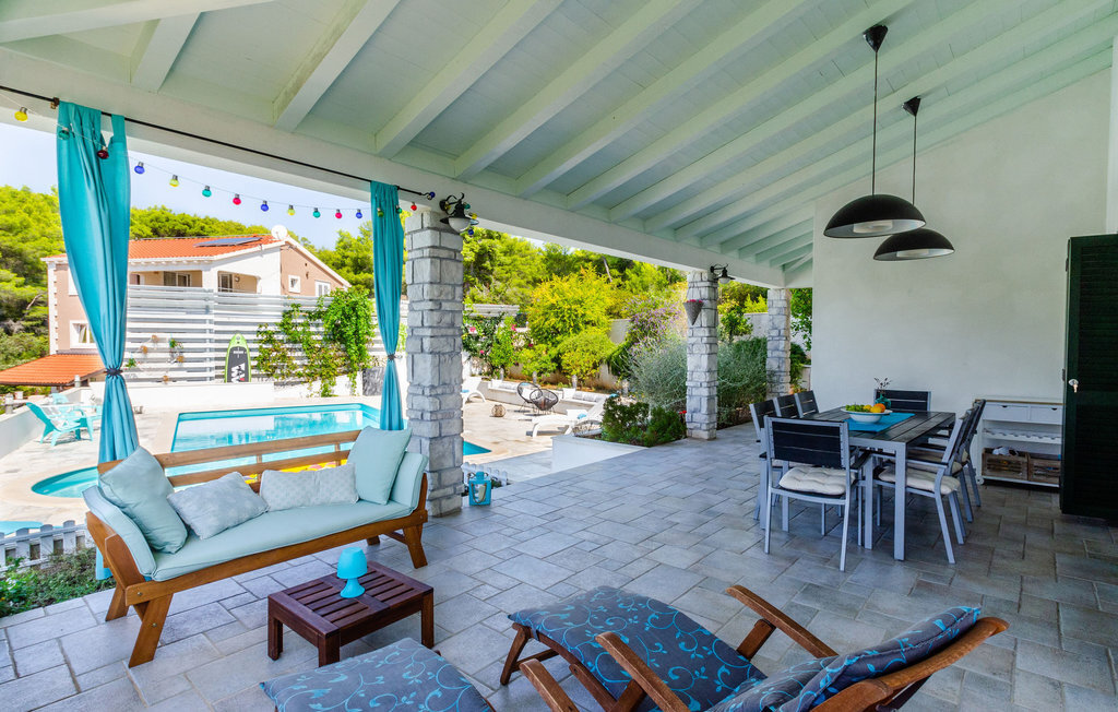 Depuis la maison, vous pouvez facilement descendre par un escalier et un sentier jusqu'à la plage de rochers, où vous pourrez vous détendre en vous glissant dans l'eau. Profitez du panorama qui s'offre à vous depuis l'eau. Si vous avez une pagaie, vous pouvez explorer les petites îles et la côte. Avec un peu de chance, vous verrez peut-être des dauphins nager près de vous. Le snorkeling est également recommandé ici, car le monde sous-marin est magnifique à regarder.