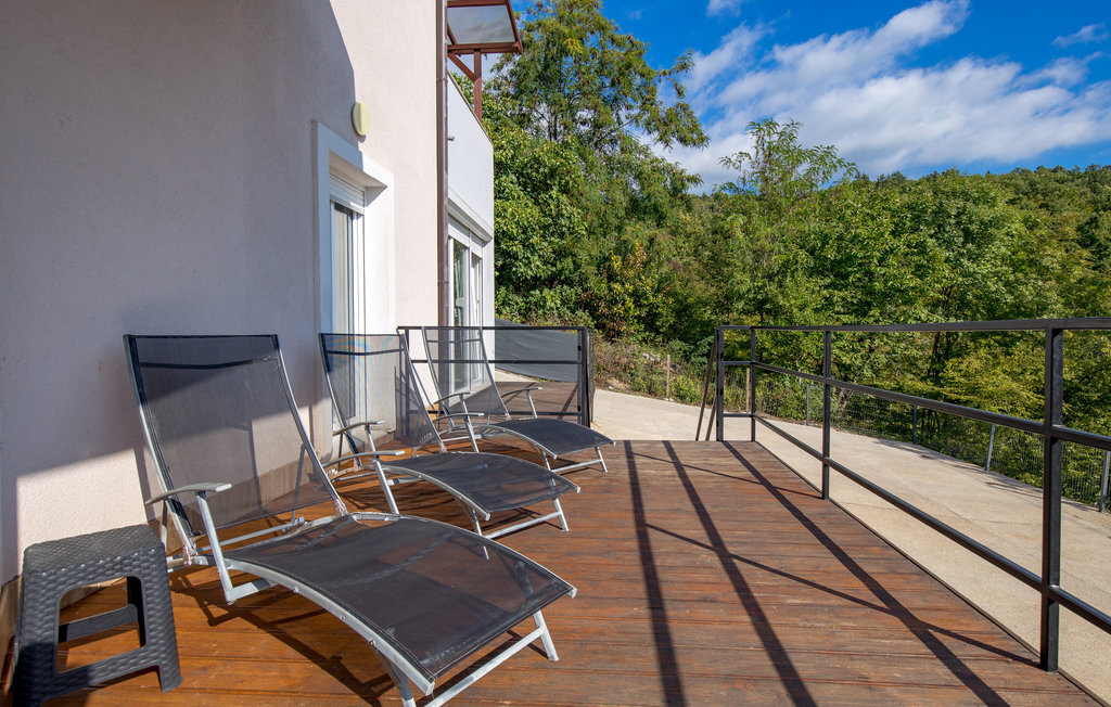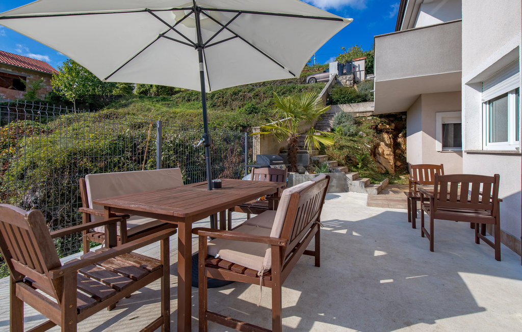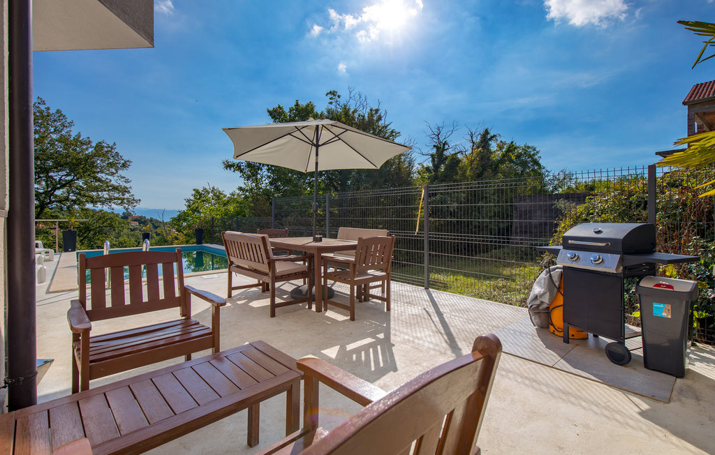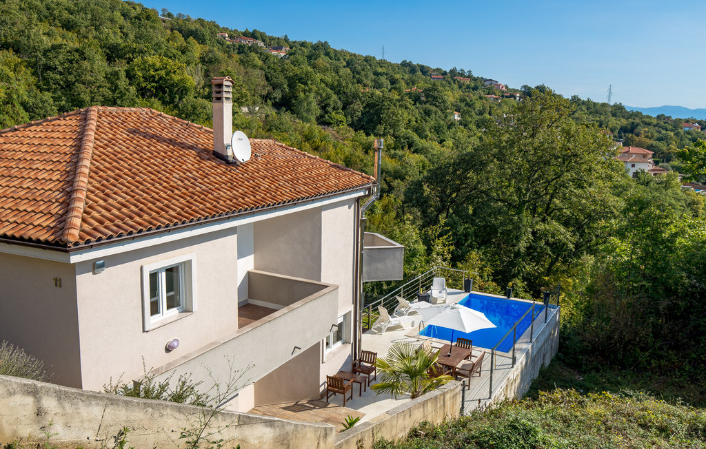 Cette belle maison est située dans un endroit calme, sur la célèbre Riviera d'Opatija, au-dessus de la ville de Iii et de sa célèbre plage. La maison spacieuse et confortable se compose de trois unités séparées, reliées par un escalier extérieur, dont deux se trouvent au rez-de-chaussée surélevé et la troisième occupe tout le premier étage. Elle est donc idéale pour accueillir deux familles ou une famille nombreuse, car il est possible de séparer les unités. La maison est moderne et sobrement aménagée et vous offre une vue partielle depuis le rez-de-chaussée et une vue dégagée sur la baie de Kvarner, la mer bleue et les îles de Cres et Krk depuis le premier étage.