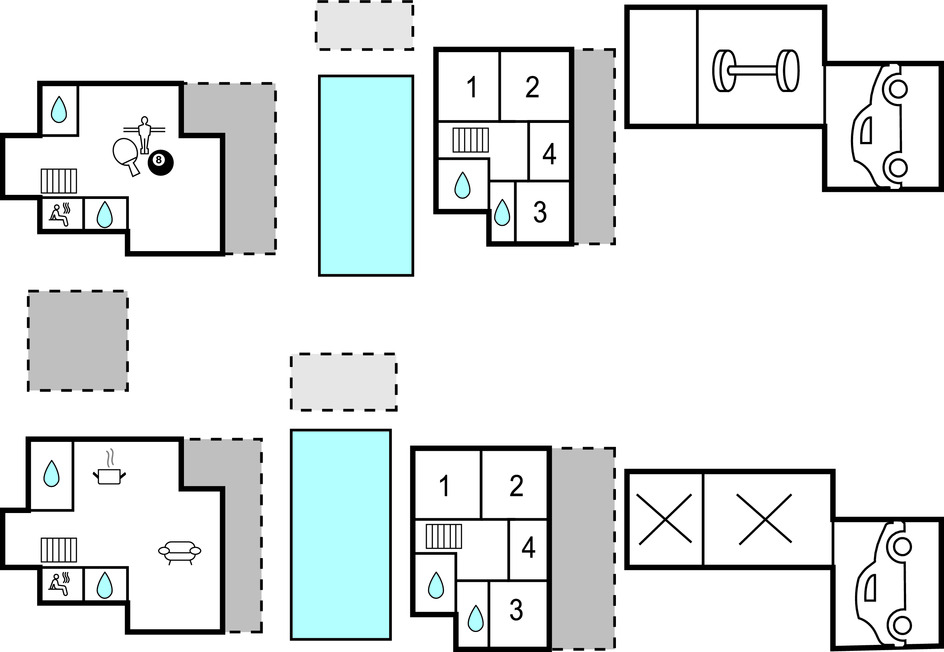 Location de vacances avec activités : Cette location de vacances comprend un ou plusieurs équipements de loisir (ping-pong, billard, baby-foot...)