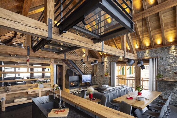 Le chalet récemment rénové présente un style moderne avec un clin d'œil au passé. De nombreux matériaux de haute qualité tels que le bois, la pierre naturelle et le fer ont été utilisés, qui rayonnent également de robustesse. Le chalet dispose de trois étages élégants, la passerelle en verre étant un véritable accroche-regard.
