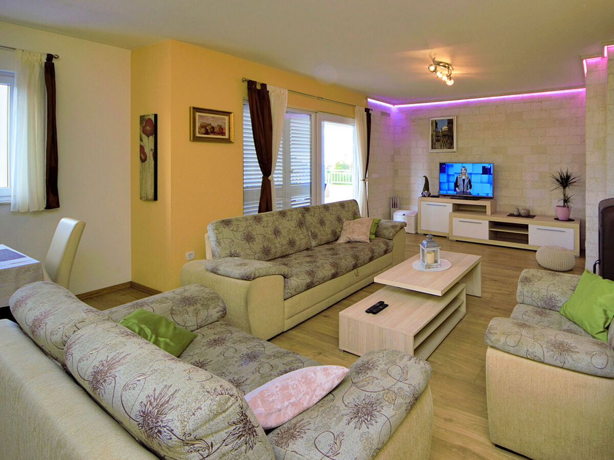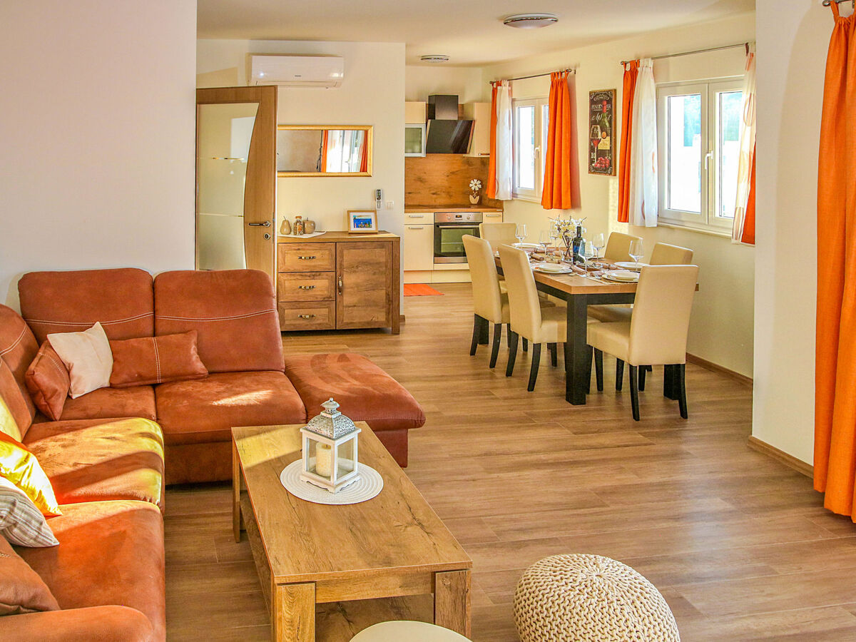 Séjour/salle à manger avec TV (satellite) et air-conditionné.