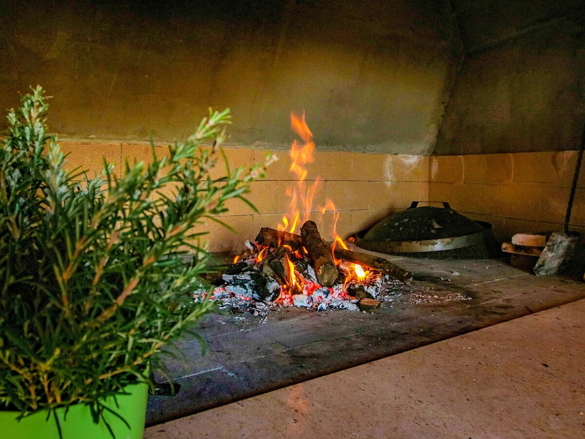 Cuisine ouverte (four, lave-vaisselle, 4 plaques vitrocéramiques, grille-pain, bouilloire électrique, micro-ondes, congélateur, cafetière électrique) avec table pour les repas.