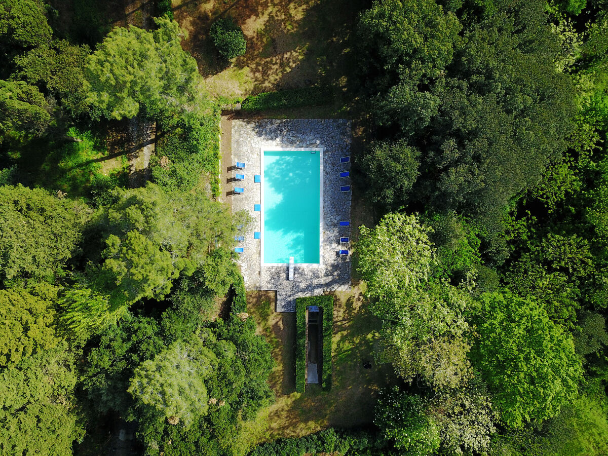 À 2 km du centre de Lorenzana, à 30 km du centre de Pisa, à 80 km du centre de Firenze, situation tranquille, ensoleillée, surélevée sur une colline, à 20 km de la mer, dans la verdure.