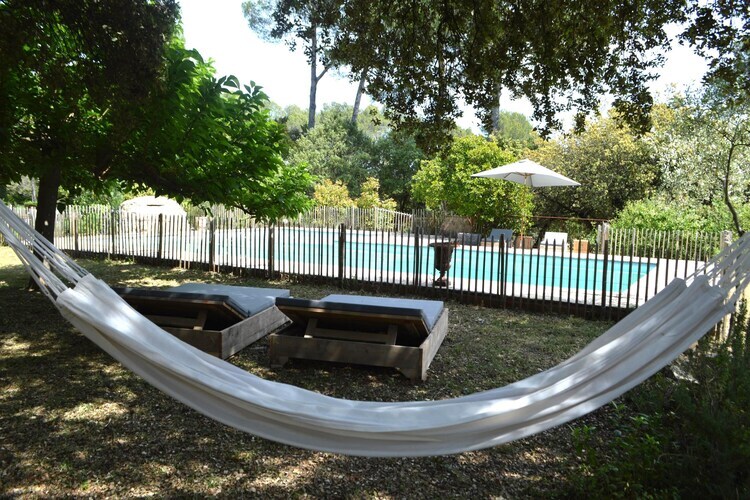 L'environnement extérieur se caractérise par un coin salon cosy avec meubles et coussins en bois, un hamac, une terrasse avec table à manger couverte de vignes et une grande piscine. La piscine est clôturée et mesure 12 mètres sur 6 avec une profondeur allant de 1 à 2,5 mètres. De longues marches dans la piscine garantissent une entrée et une sortie faciles. Autour de la piscine se trouvent des chaises longues simples et doubles et un parasol.
