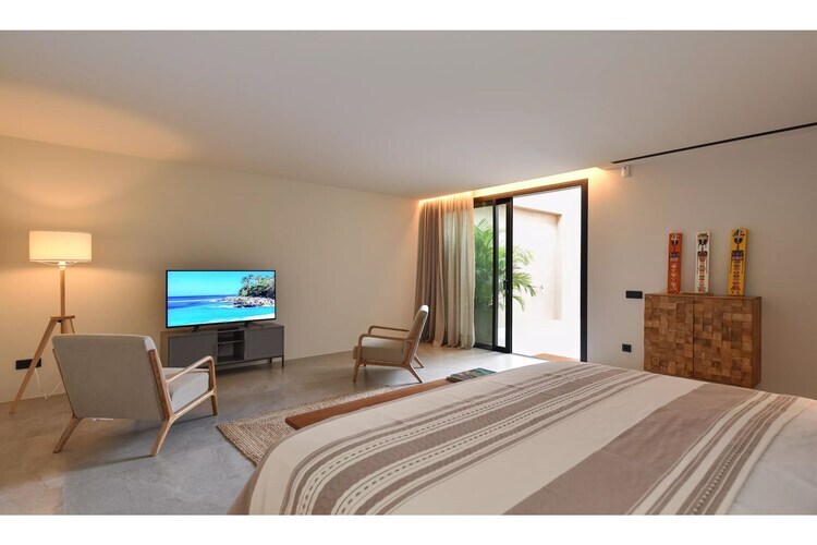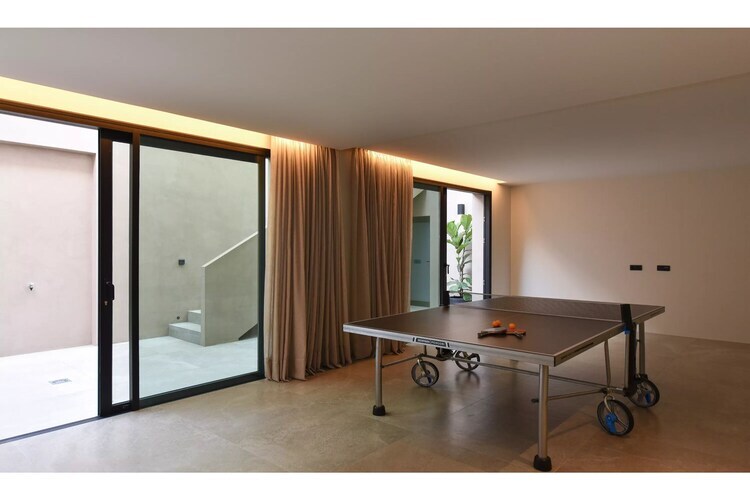 Au rez-de-chaussée, vous trouverez une chambre double avec deux lits simples et une salle de bain complète, ainsi que la chambre principale avec un lit double, un dressing privé et une salle de bain complète en suite. Le spacieux salon ouvert est équipé d'une Smart TV, d'internet, d'un grand canapé confortable et d'un accès à la terrasse par une grande porte coulissante, qui se jette dans la cuisine avec bar et est équipée dans les moindres détails : four, micro-ondes, réfrigérateur, cafetière, ustensiles de cuisine et bouilloire, en plus il y a la buanderie avec lave-linge séchant, Toutes les pièces du rez-de-chaussée ont accès par des portes coulissantes en verre à la belle terrasse et à la salle à manger extérieure avec un barbecue au charbon de bois argentin, solarium avec transats et la belle piscine privée (chauffable en supplément). Au sous-sol, nous trouvons une chambre principale avec un lit double king size, un dressing et une salle de bain complète en suite. Il dispose également d'une terrasse privée et d'une salle de jeux avec table de ping-pong.