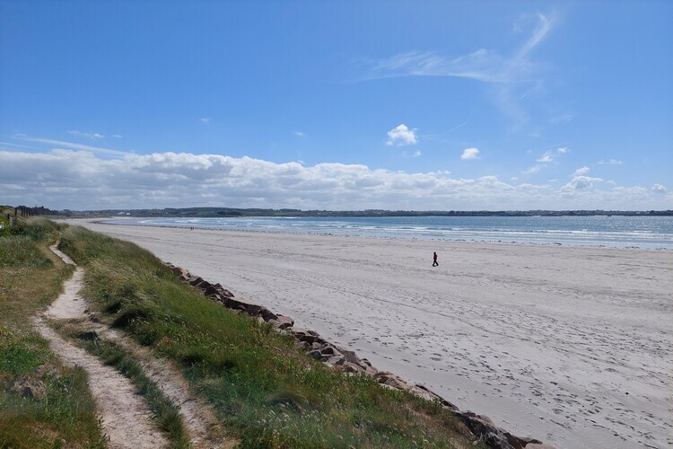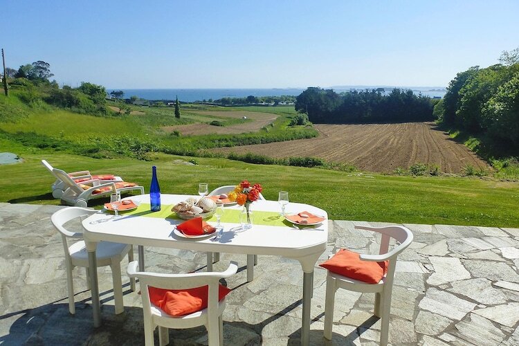 La mer à perte de vue ! L'imposante maison en pierres de granit se situe sur un grand terrain avec un parking commun pour une autre petite unité d'habitation qui est également utilisée comme maison de vacances. Un jardin privé de 1 400 m² est à votre disposition. Les pierres de la construction traditionnelle proviennent de deux anciennes maisons de maître. L'immense cheminée ouverte dans le salon et les plafonds classiques à poutres apparentes soulignent le caractère rustique de la maison, qui ressemble presque à un château. Dès le petit-déjeuner avec baguette, croissants et crêpes vous pourrez profiter du calme environnant et de la vue fantastique qui s’étend jusqu'à la plage de sable en contrebas, située à seulement 800 mètres. Une chambre à coucher à l'étage dispose également d'un charmant escalier extérieur, mais elle est également accessible par l’intérieur. Selon l'exposition au soleil, vous pourrez vous détendre sur la terrasse située devant ou derrière la maison.