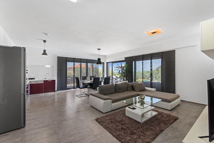 Cette élégante villa à Novigrad peut accueillir six personnes dans trois chambres, chacune avec sa propre salle de bain. Le salon dispose d'une télévision par satellite et d'un coin salon confortable, tandis que la cuisine est entièrement équipée d'appareils électroménagers modernes, dont un lave-vaisselle, un four et une machine à café. Une terrasse et un patio privés offrent une parfaite harmonie entre l'intérieur et l'extérieur.