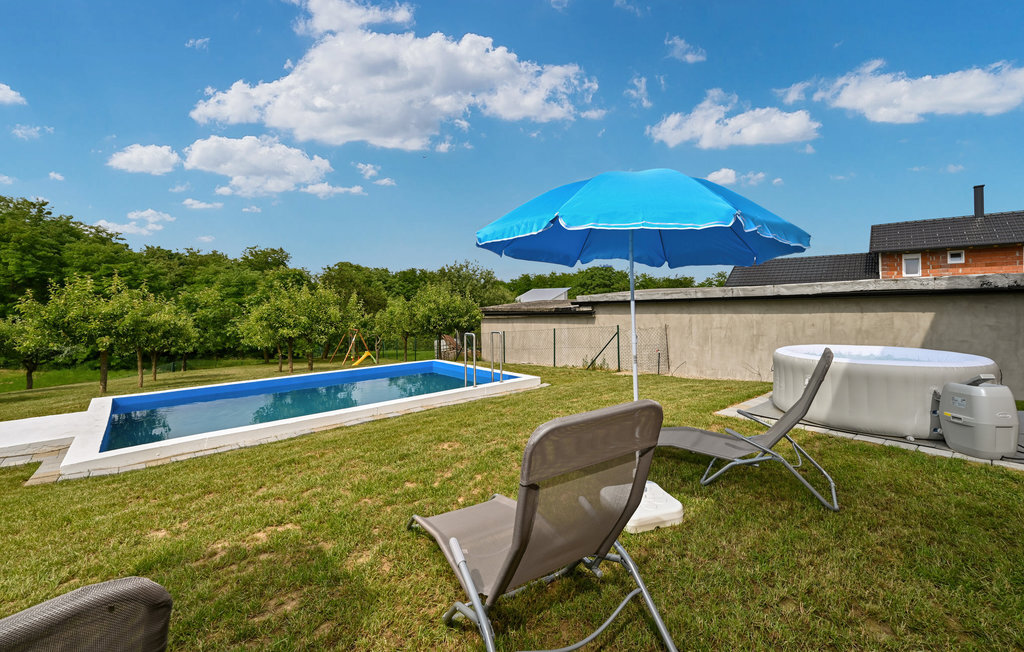 Bien-être à l'extérieur : Location de vacances disposant de chaises-longues et d'un ou plusieurs équipements tels que piscine extérieure, jacuzzi extérieur, lit à baldaquin de jardin etc...